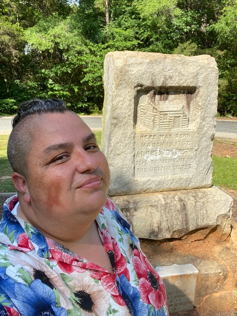 The Andrew Jackson Birthplace marker in South Carolina With the birthplace marker Little school cabin in Andrew Jackson State Park! The pavillion of Jackson birthplace memorials in Andrew Jackson State Park. With the memorials Andrew Jackson statue Andrew and me Dedicated to his mother With the South Carolina marker