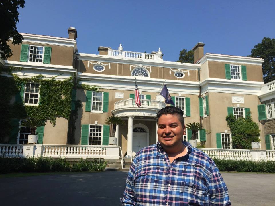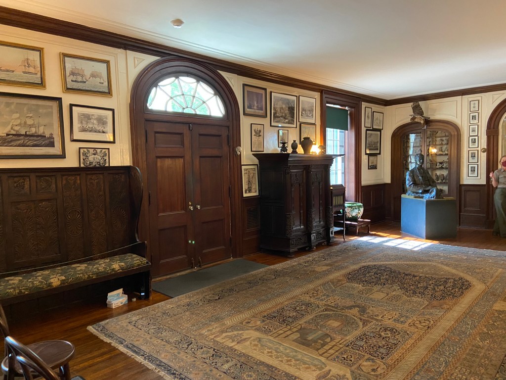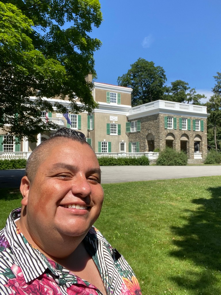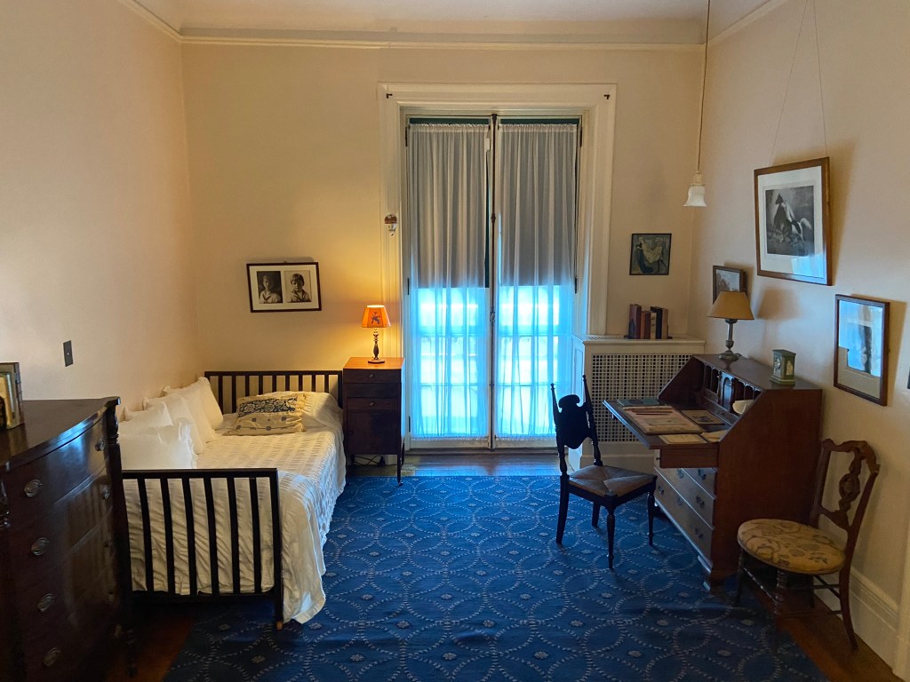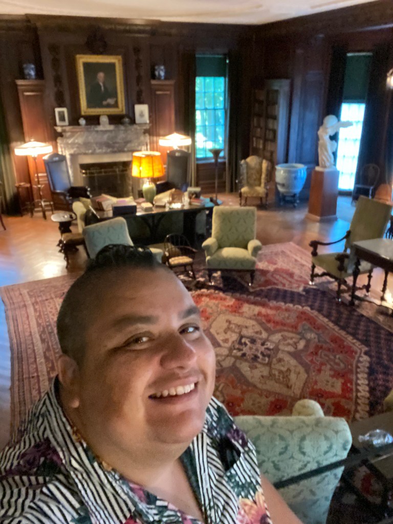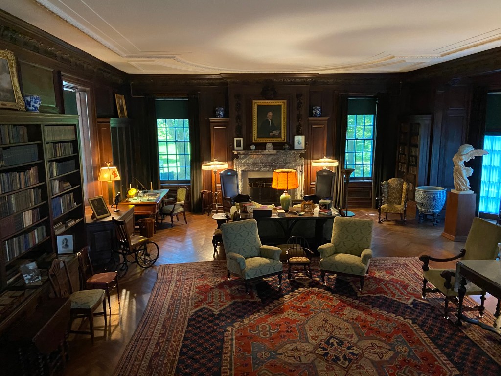 At Franklin Roosevelt’s birthplace and home! Hyde Park! In the entrance hallTeeming with photographsThe dining room Music roomMusic room detailsFranklin Roosevelt in the entranceFranklin and me Entrance hall from the stairsLibrary Taking it all in Breathtaking In FDR’s Hyde Park library.Franklin’s bedroom Franklin bedroom So cool Images of the third floor The room where FDR was bornBirth room Franklin’s bedroom as an adultIn Franklin’s bedroomEleanor’s bedroomThe back facadeTowards the southLove the FDR site in Hyde Park!Aeriel view of Springwood during FDR’s presidency