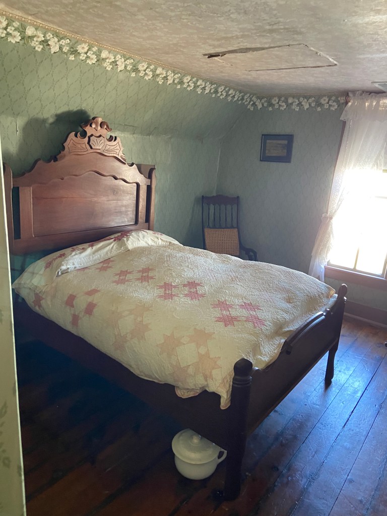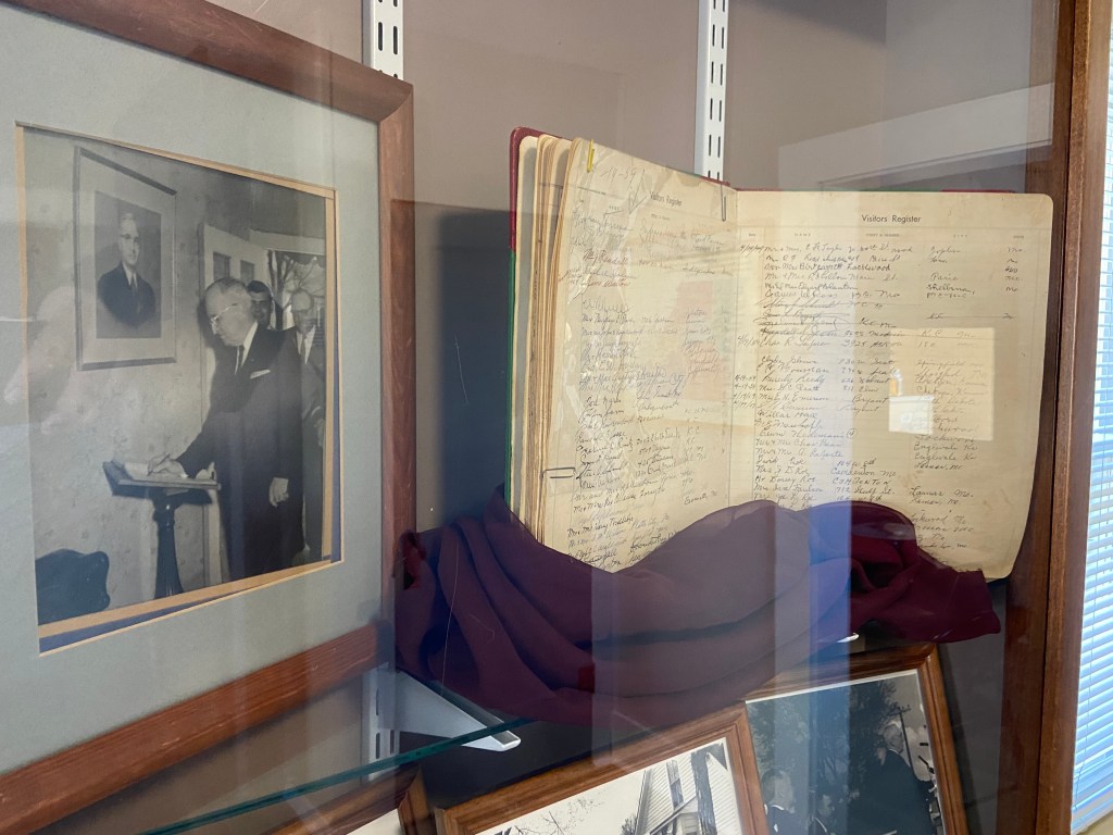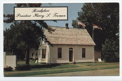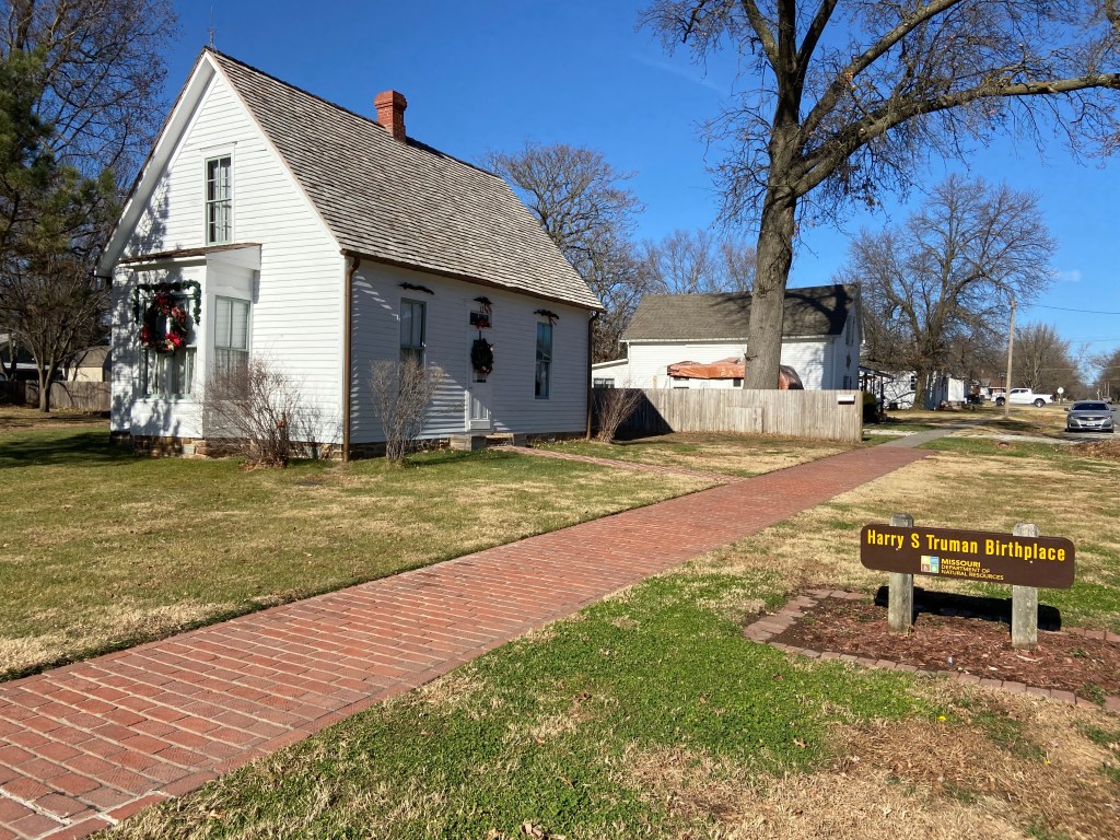 Harry Truman Birthplace!Harry Truman Birthplace! Going in! Truman Living Room Truman Was Born Here! Harry and his birthplaceHired man’s room Master bedroom on second floorSmaller bedroom on second floorKitchen OuthouseTruman Birthplace Visitor CenterHarry signed the guestbook with “Farmer” as his occupationOutside the birthplaceExplaining the site if you can’t go inTruman Birthplace MarkerAmerican Legion monument Sapling from Mount VernonHarry Truman BirthplaceTruman birthplace! Unidentified visitors (and since-removed attachment) on the birthplace