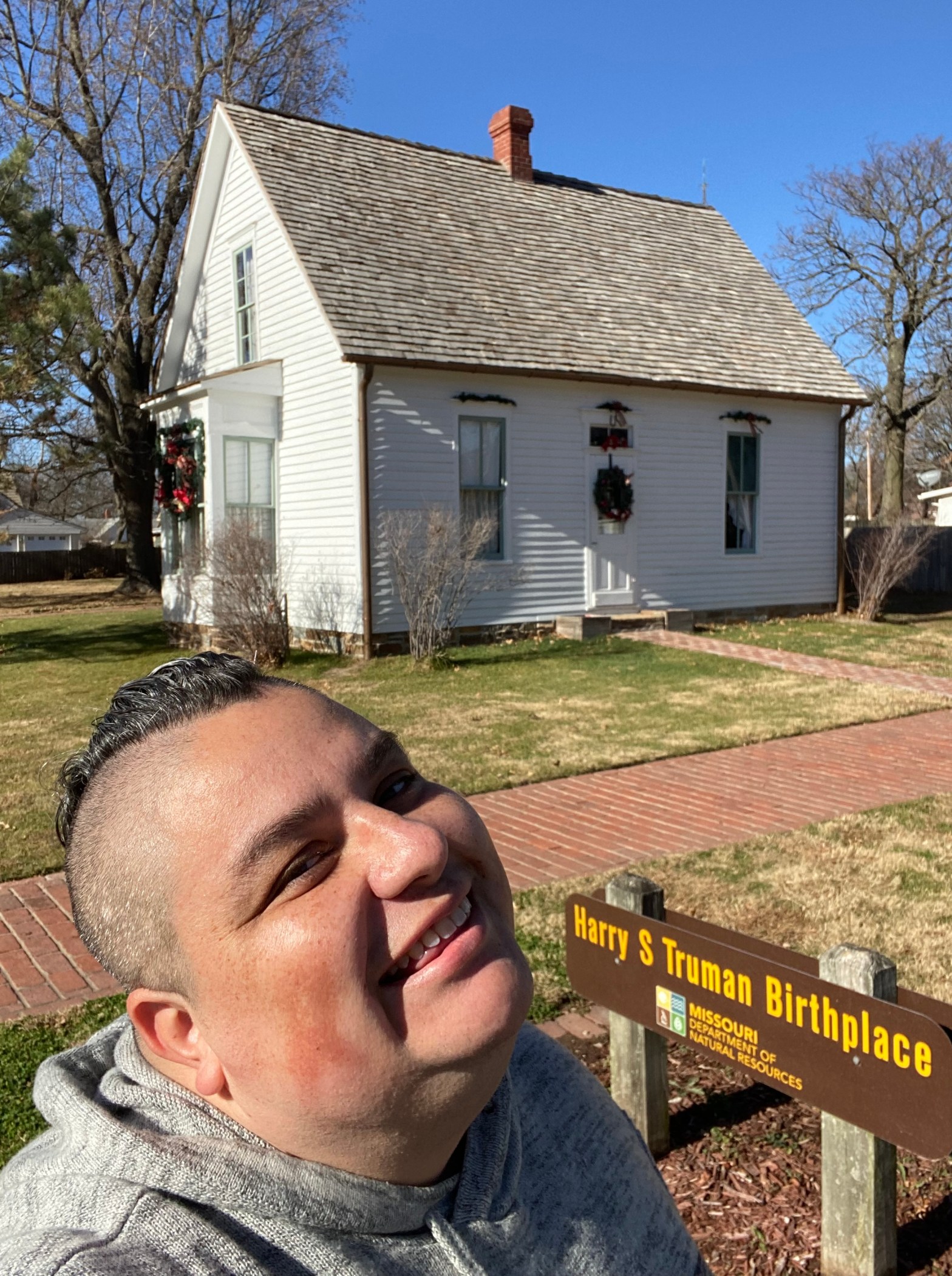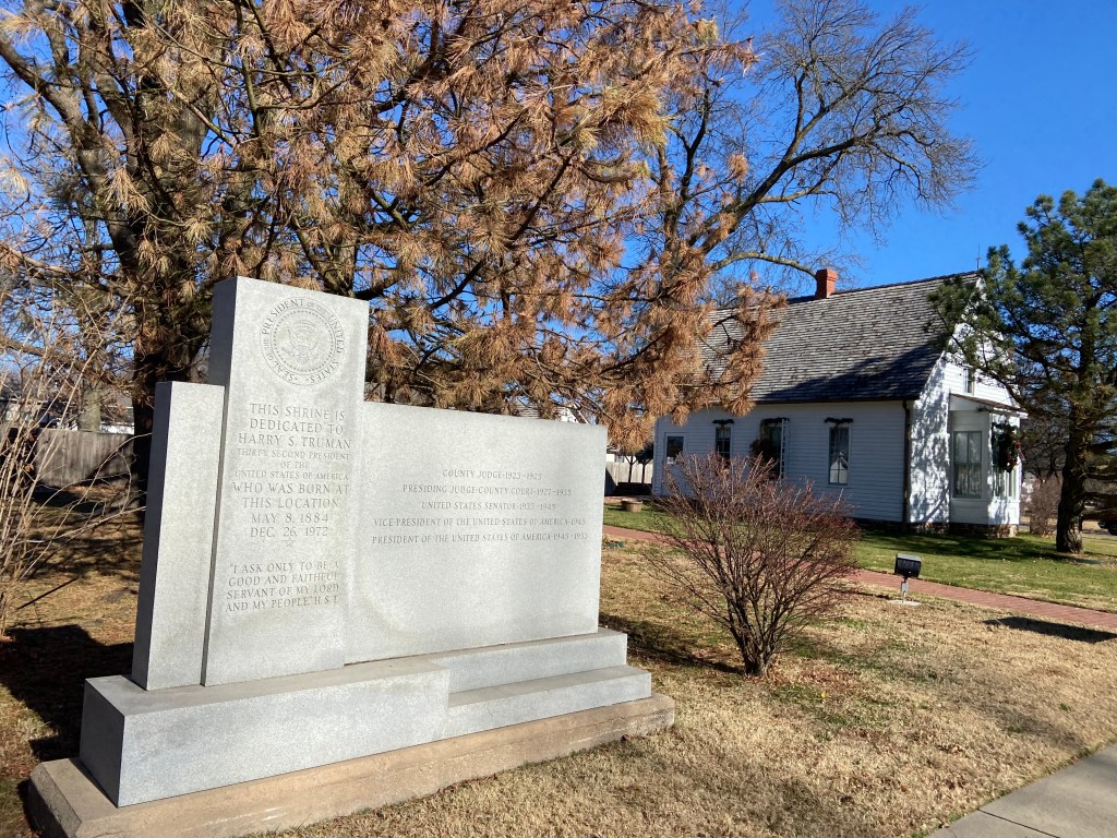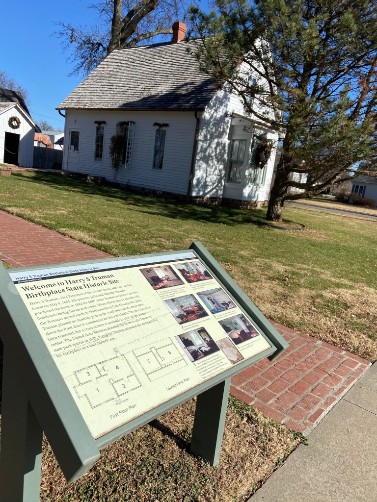 The Harry S Truman Birthplace!Harry’s birth home. Inside the home.The kitchen.Harry’s birth room.Outside the Harry Truman birthplace.One of the memorials for Truman’s birthplace.The American Legion monument.Harry and me! Harry Truman Birthplace.At the birthplace!