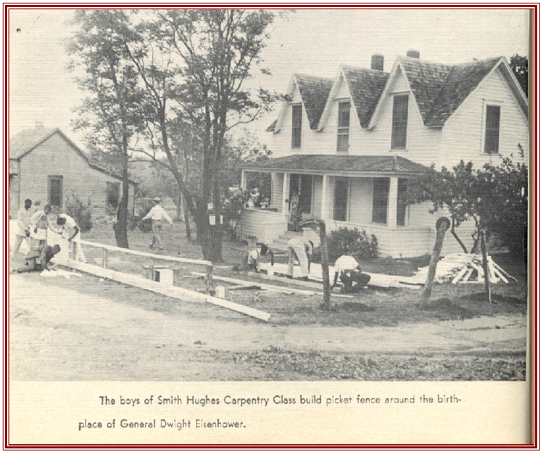The Eisenhowers, as a young, and older, familyThe Eisenhower Birthplace before being restored.