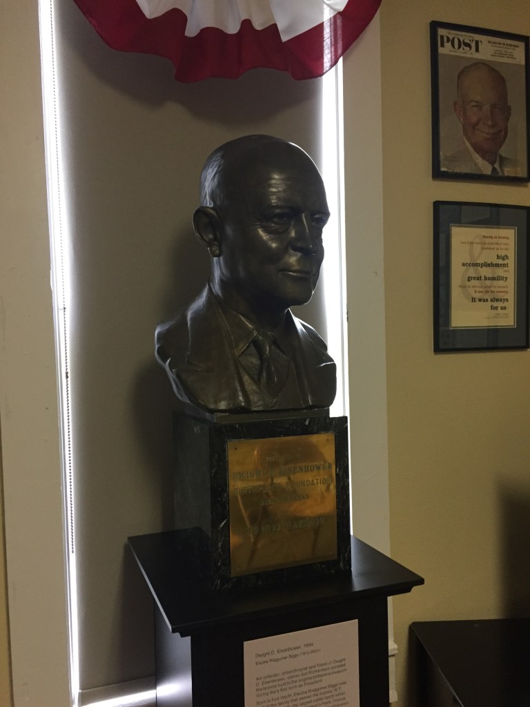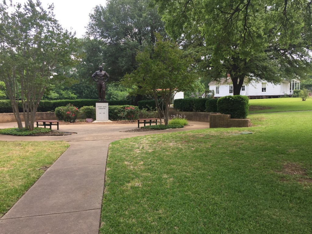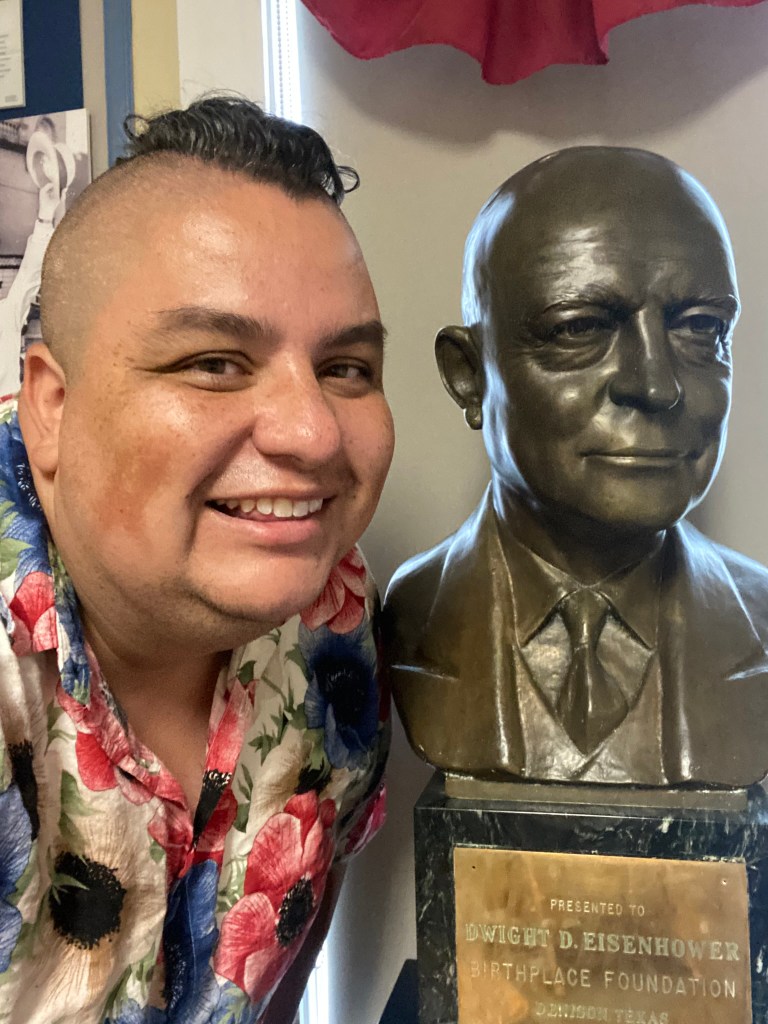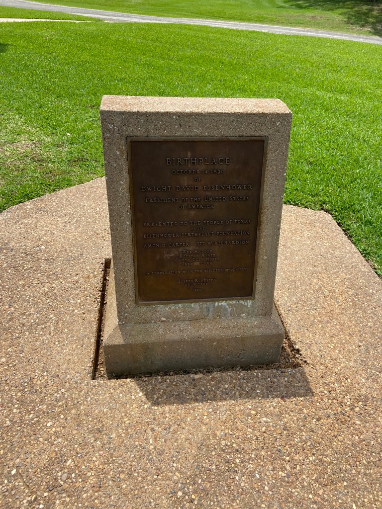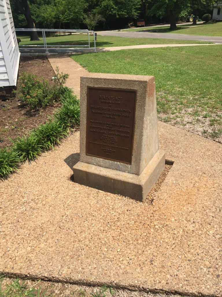 Dwight Eisenhower birthplace in DenisonAt the Dwight Eisenhower birthplaceDwight’s bust at the visitor centerStatue of Dwight beside the birthplaceStatue of Dwight EisenhowerDwight Eisenhower and me Marker in front of birthplaceFrom the birthplace!