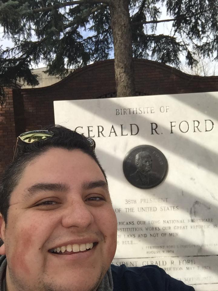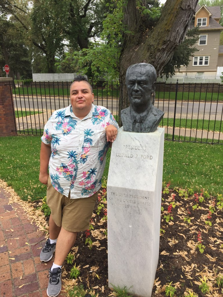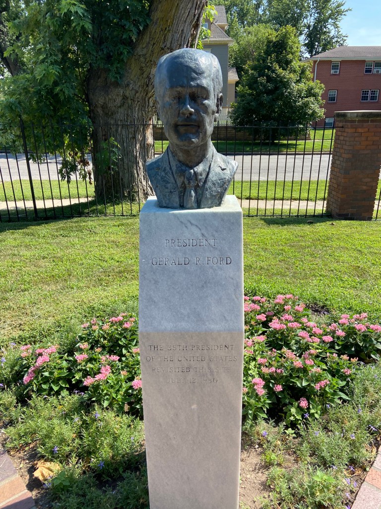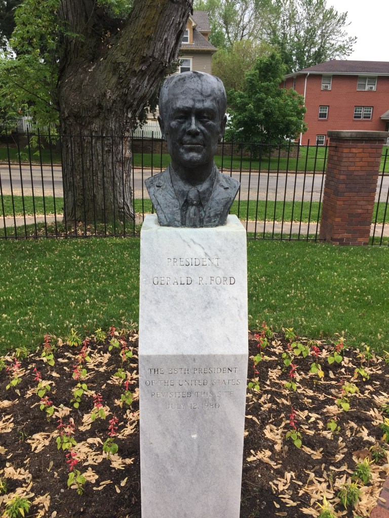 The Gerald Ford birthplace!At the Gerald Ford birthplace!Displays on Ford’s lifeGerald Ford’s political careerGerald and JoeGerald Ford birthplace houseGerald Ford at the siteWith Gerald’s bustBetty FordMy friends Nate and Alex with Gerald’s bustBirthplace site