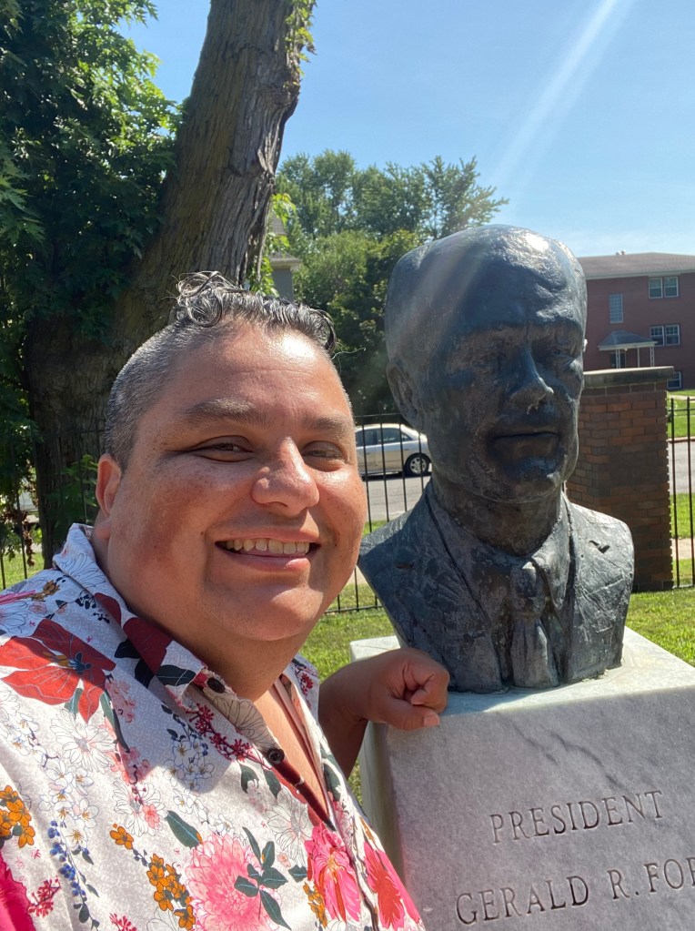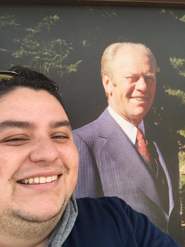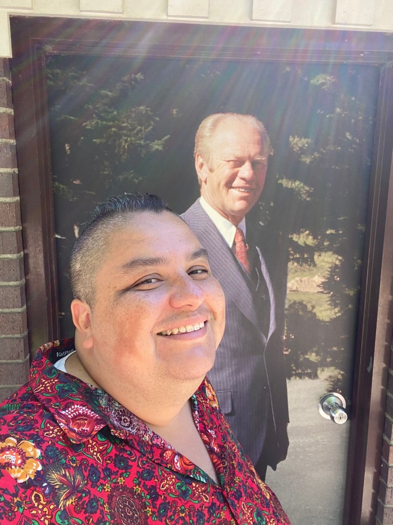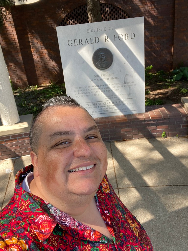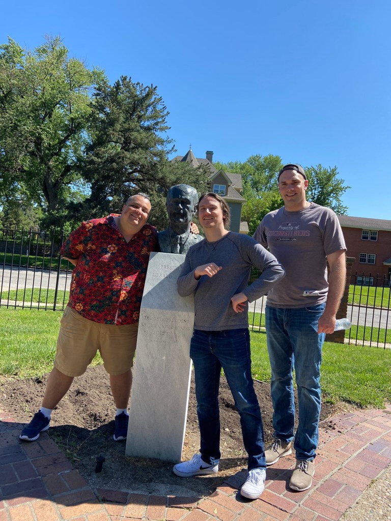 The Gerald Ford birthplace!At the Gerald Ford birthplace!Displays on Ford’s lifeGerald Ford’s political careerGerald and JoeGerald Ford birthplace houseGerald Ford at the siteWith Gerald’s bustBetty FordMy friends Nate and Alex with Gerald’s bustBirthplace site