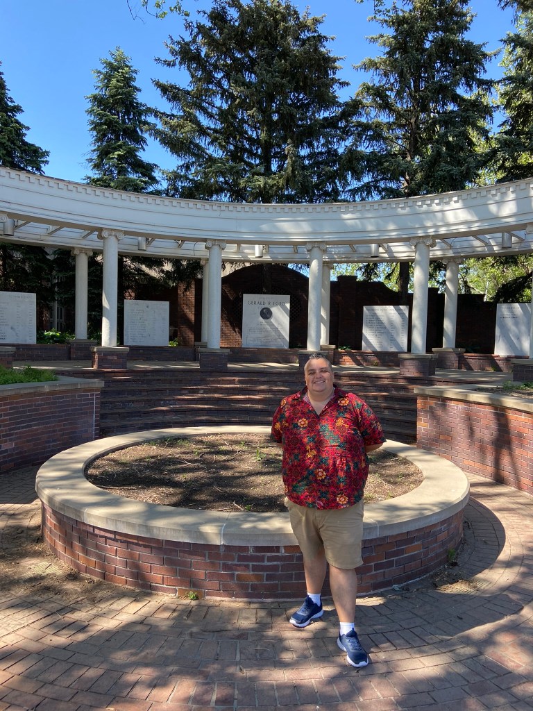 Visiting the Birthplace!Alex and Nate checking out the information kioskIn the gardenBust of GeraldGerald and me Group pic with GeraldBirthplace tabletsGerald Ford BirthplaceWith the birthplace marker!