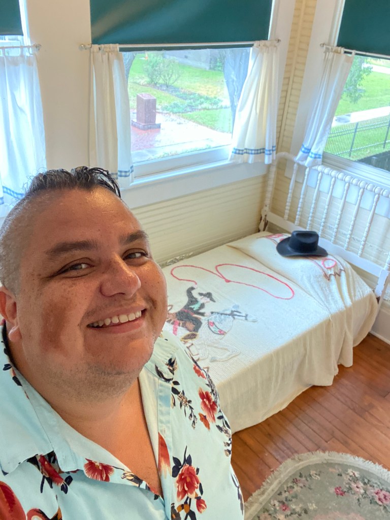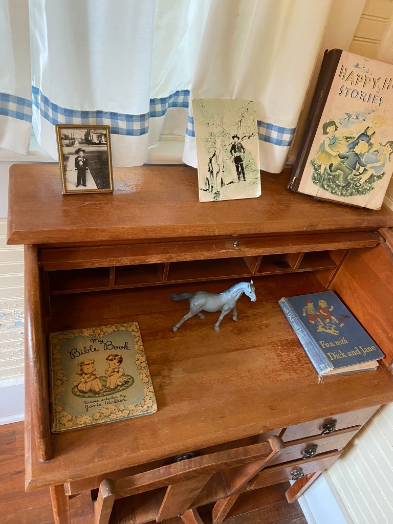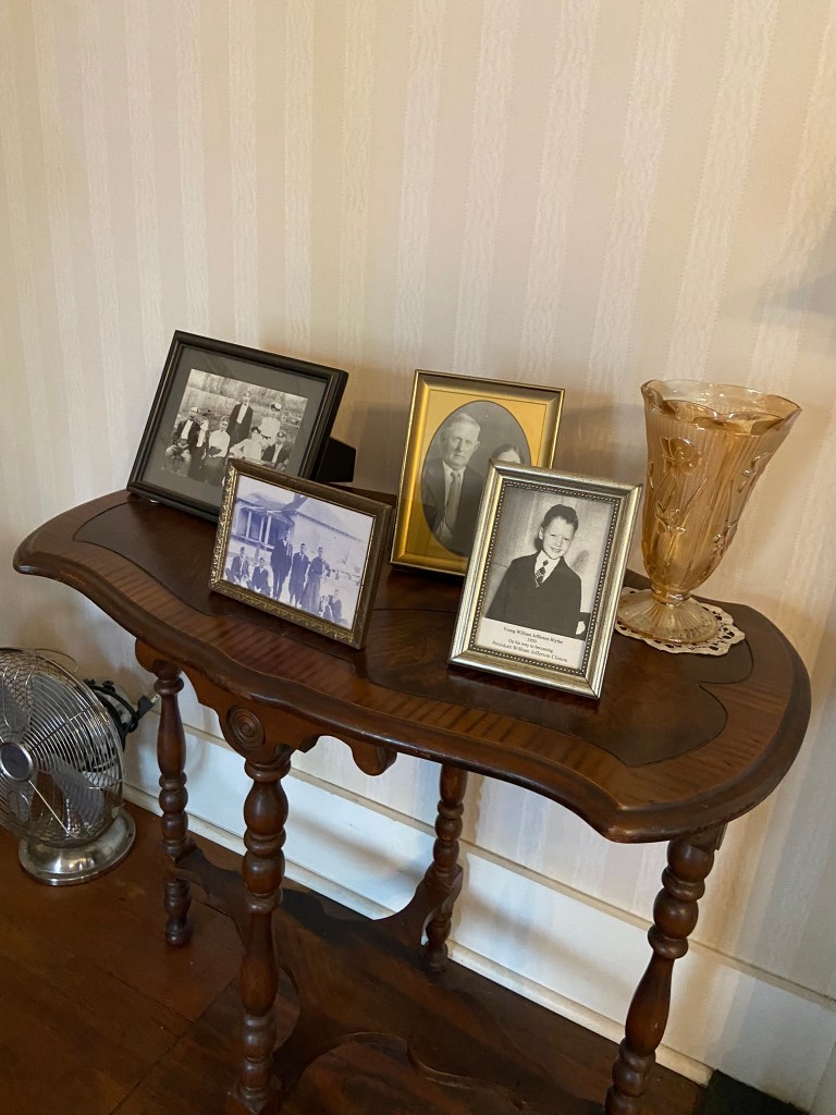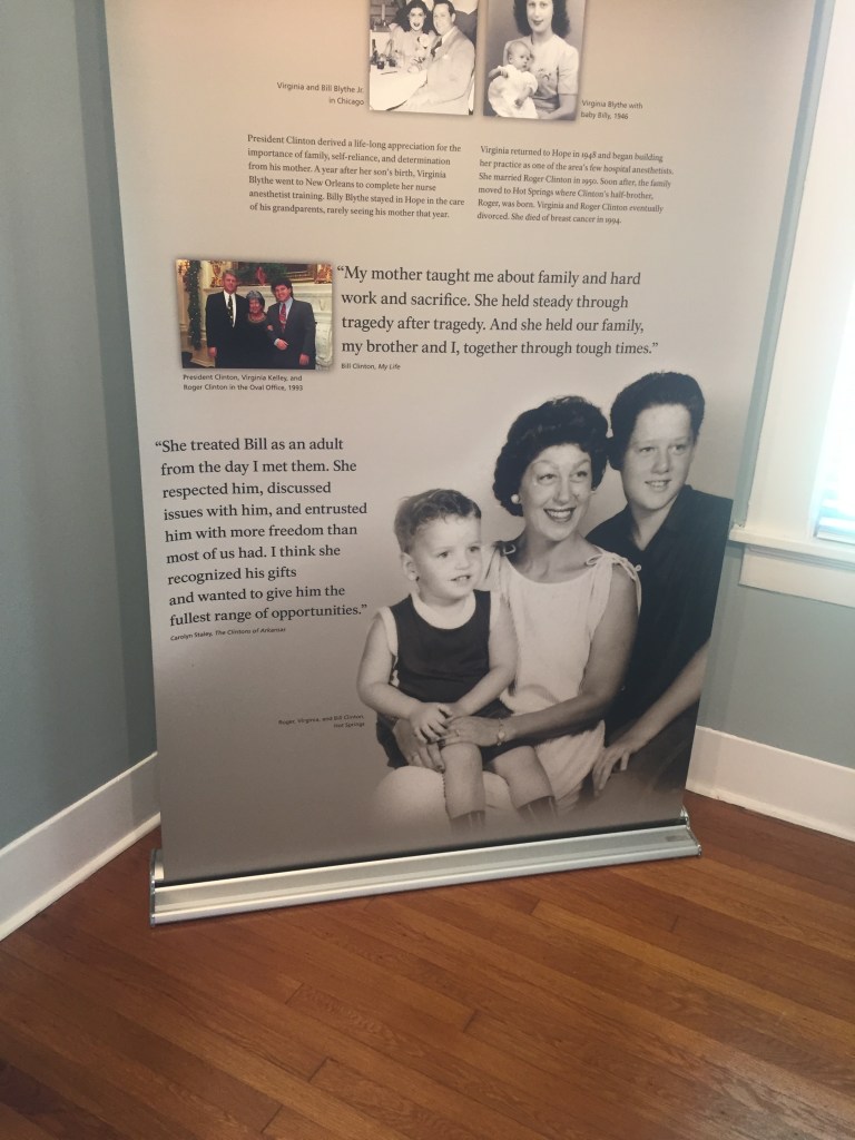 At the William Jefferson Clinton Birthplace HomeWith Bill Bill’s birthplace!Living room From the other angleMantelpiecePhotos of Bill’s familyKitchenDining roomDresser top in Virginia’s roomLil BillBill’s bedroomBedroom deskIn the bedroomOutside the home