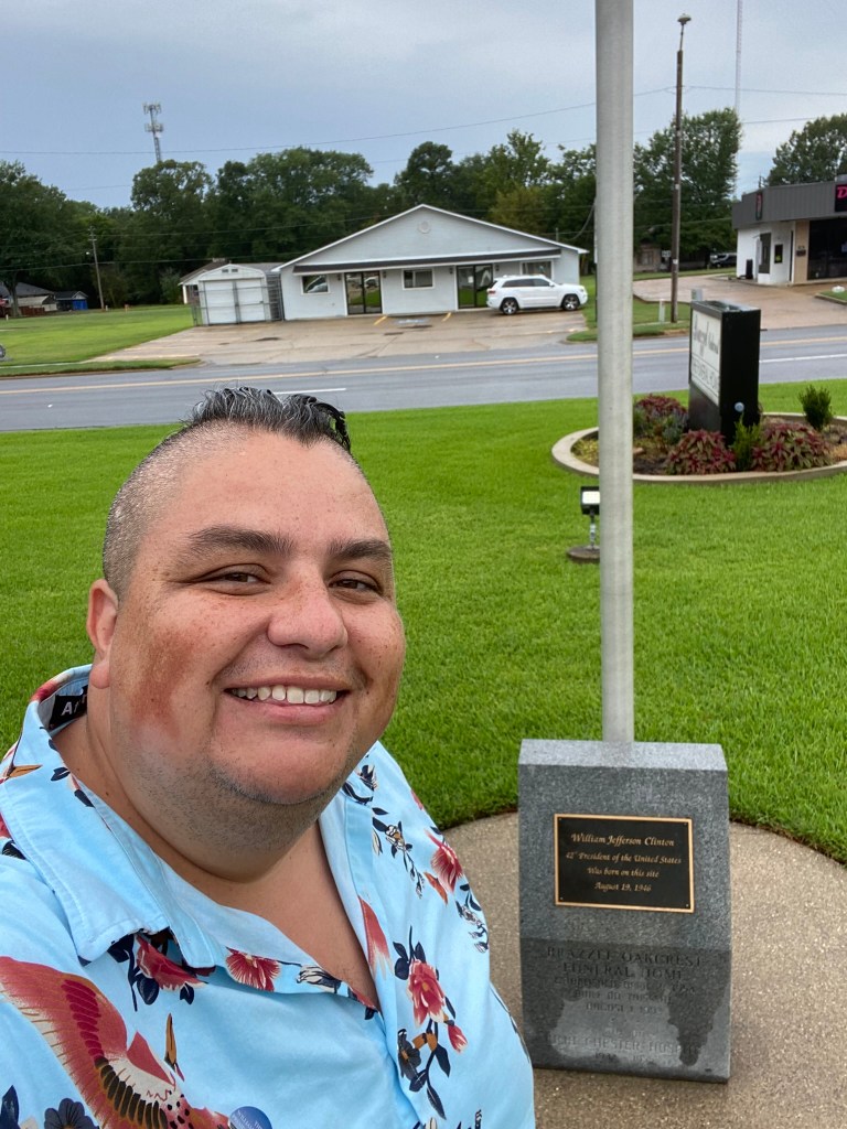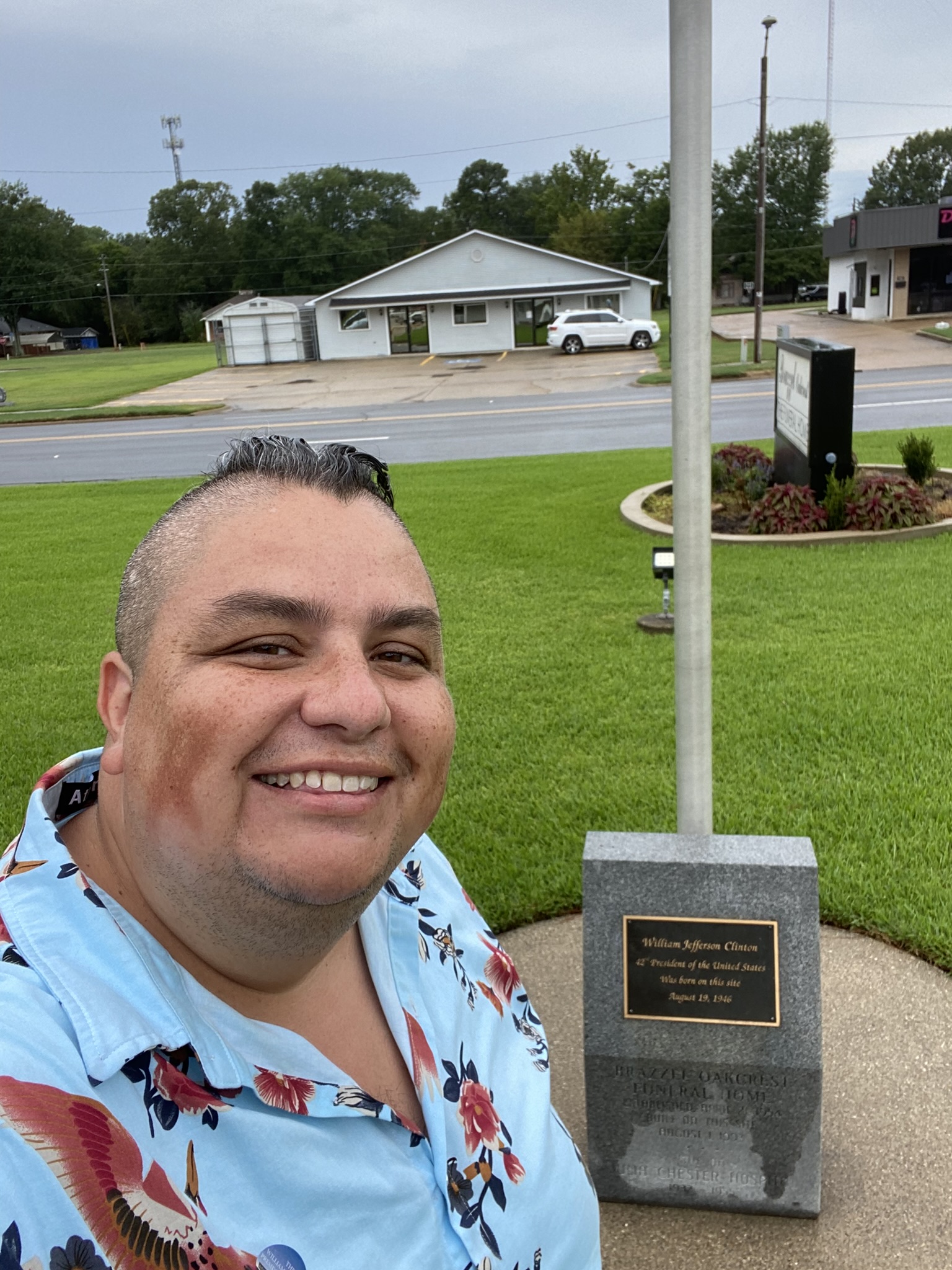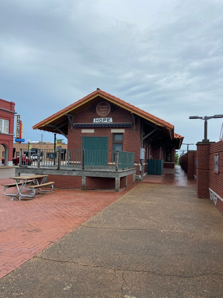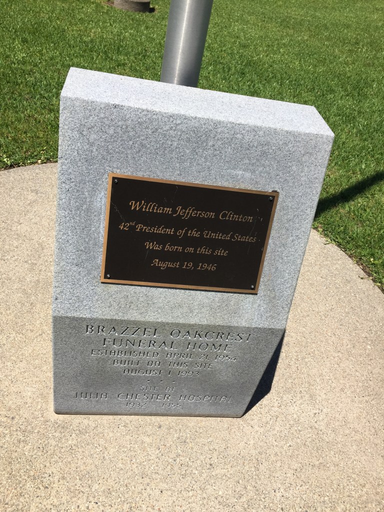 Outside the funeral home, with the birthplace markerBirthplace marker for Bill ClintonMarker up close!At the Hope train stationHope!