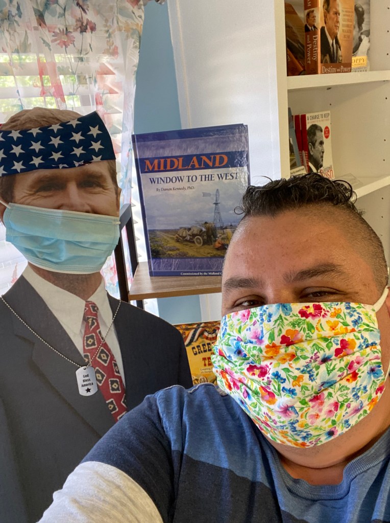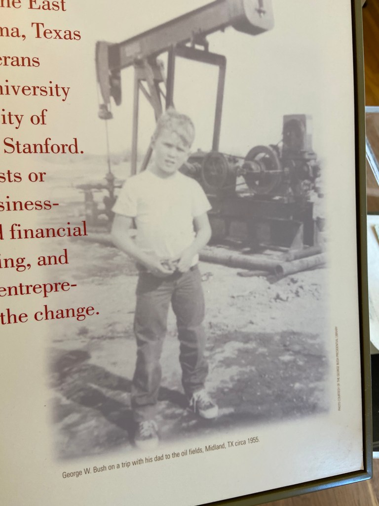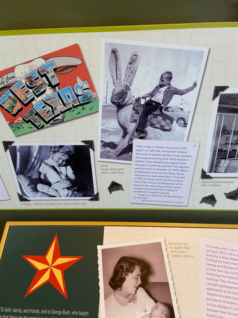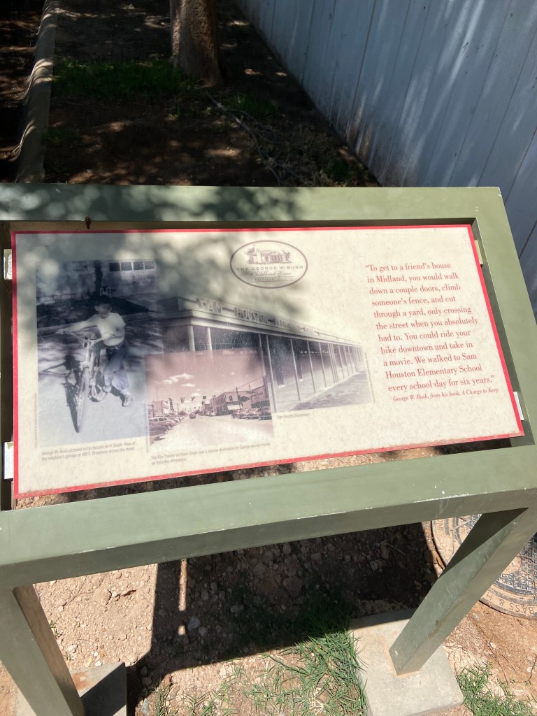 George W Bush childhood home Visitor’s Center for the George W Bush Childhood HomeWayside on the streetSome of the personal effects of the Bush familyGreat photo of young George W Family roomGeorge’s childhood bedroomFrom George’s visit to the siteExample of displaysBush family kitchenGeorge W Bush Childhood homeIn front of the home!George W Bush Childhood Home! Masked up with George!Birthplace of George W Bush