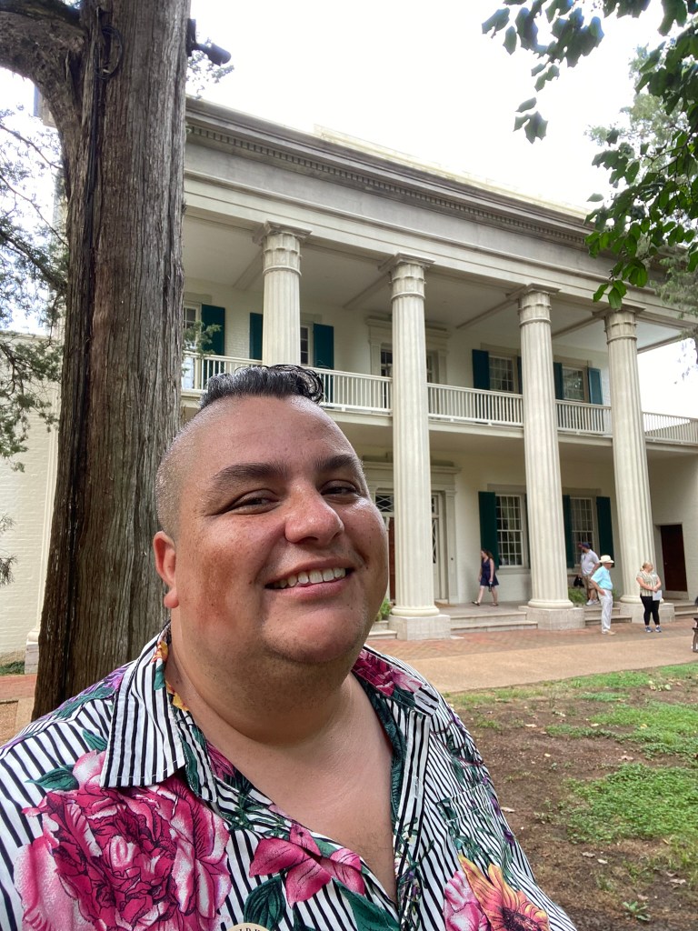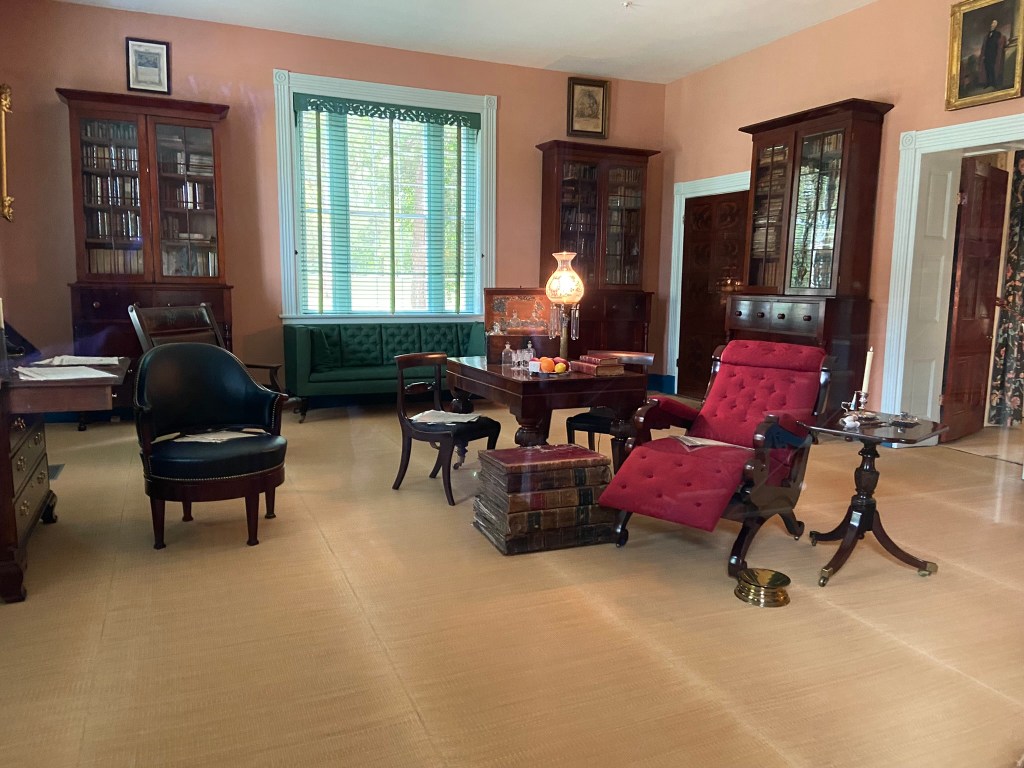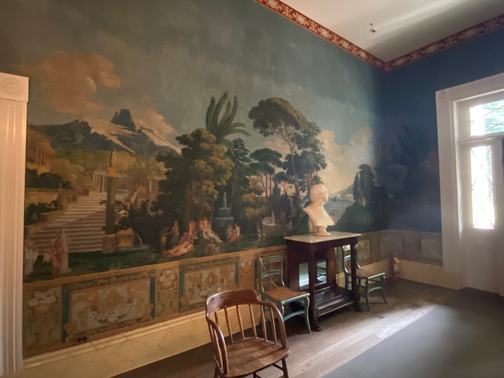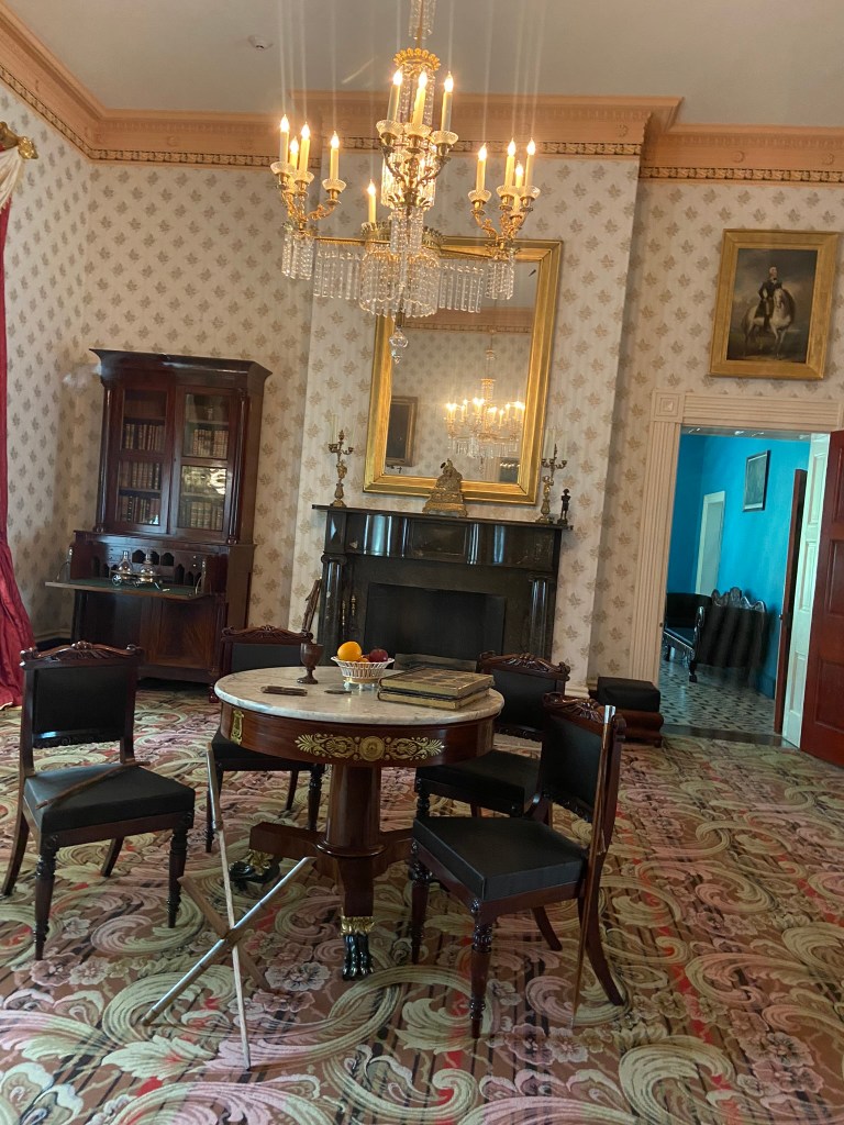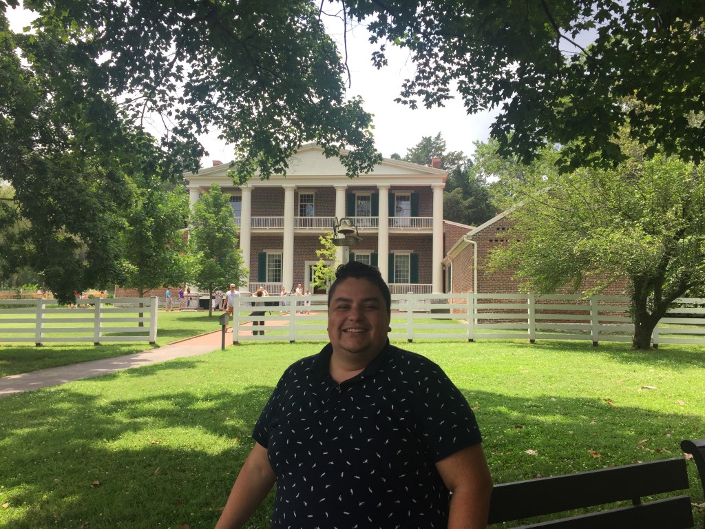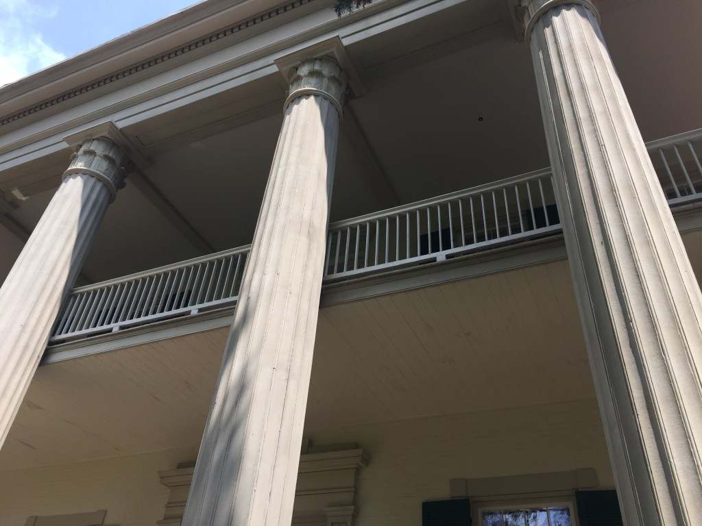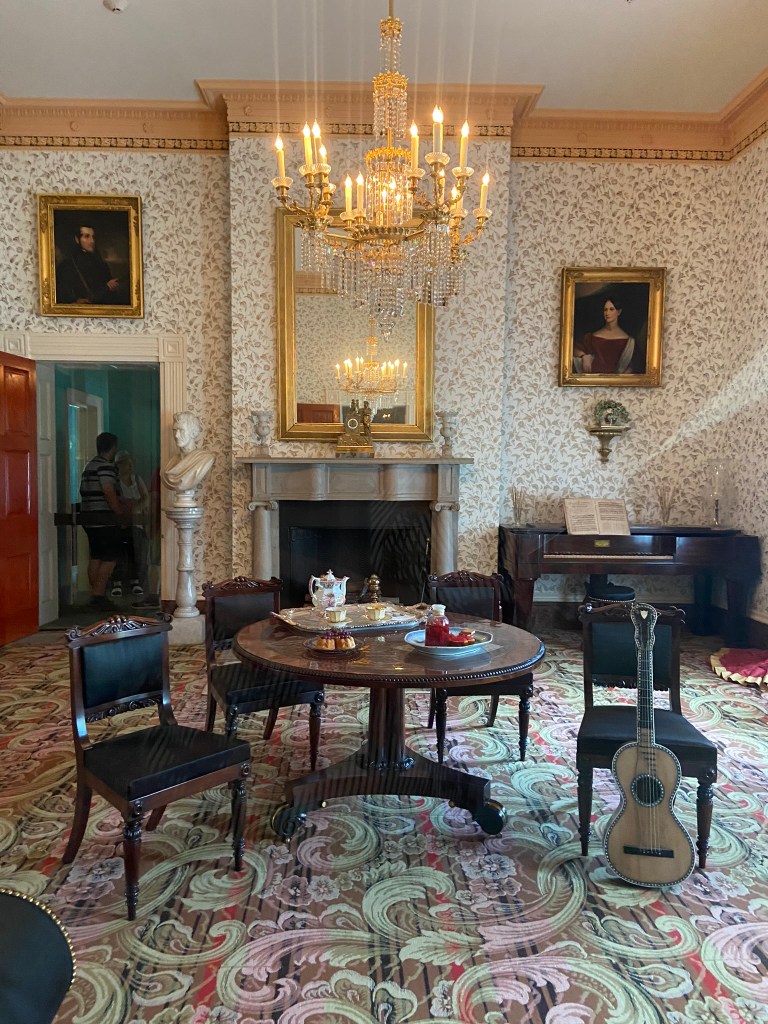 Andrew Jackson’s Hermitage!The HermitageFrom the approachThe breath-taking Entrance HallDetails on the wallpaper From the sitting roomSumptuous furnishingsIn the sitting roomAndrew Jackson’s parlorEntranceAndrew Jr’s roomGeneral and Mrs. Jackson’s bedroomAndrew Jackson’s office Heading upstairsThe yard from the balconyOn Andrew Jackson’s balcony Andrew Jackson’s balcony Guest roomThe dining room The back of the homeBack of the house: very different from the frontAndrew Jackson’s gardenIn the flowersAndrew and me!The Hermitage (with baby trees!), from the official site.
