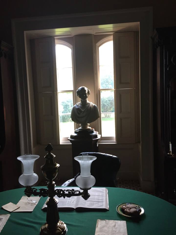 Lindenwald! Martin and Me! Henry Clay Guest Room, with the pillow he let his slave sleep on Dining Room Angelica watching over the Green Room Martin presiding over the Formal Parlor Martin’s bust in the Library The bed where Martin died, upstairs Lindenwald Lindenwald and me!