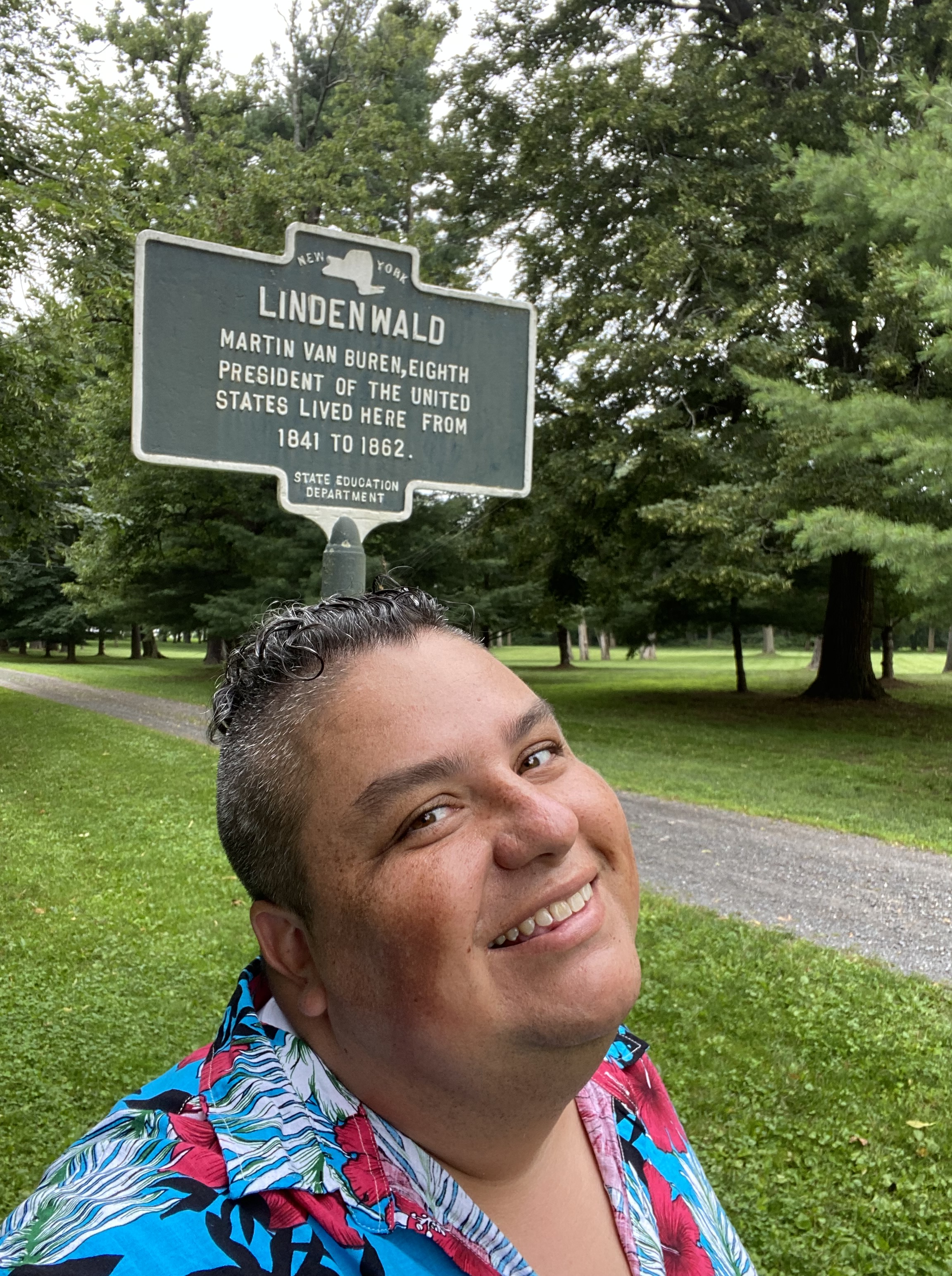 Lindenwald! Lindenwald and me! Martin Van Buren’s home! Study The Entrance Hall turned Dining Room Green RoomMartin and the Formal ParlorRed Room Staircase heading up Guest bedroom LibraryMartin could laugh at himself…cartoons of Van BurenLooking up the tower Last glimpse Lindenwald!