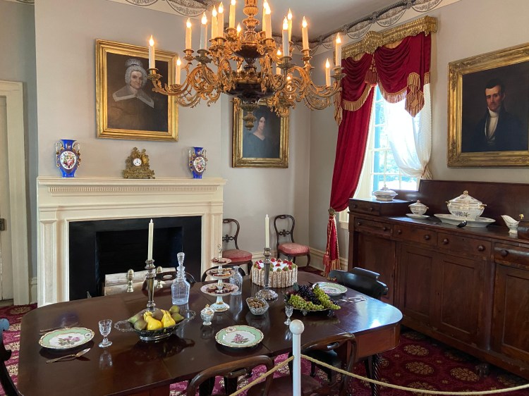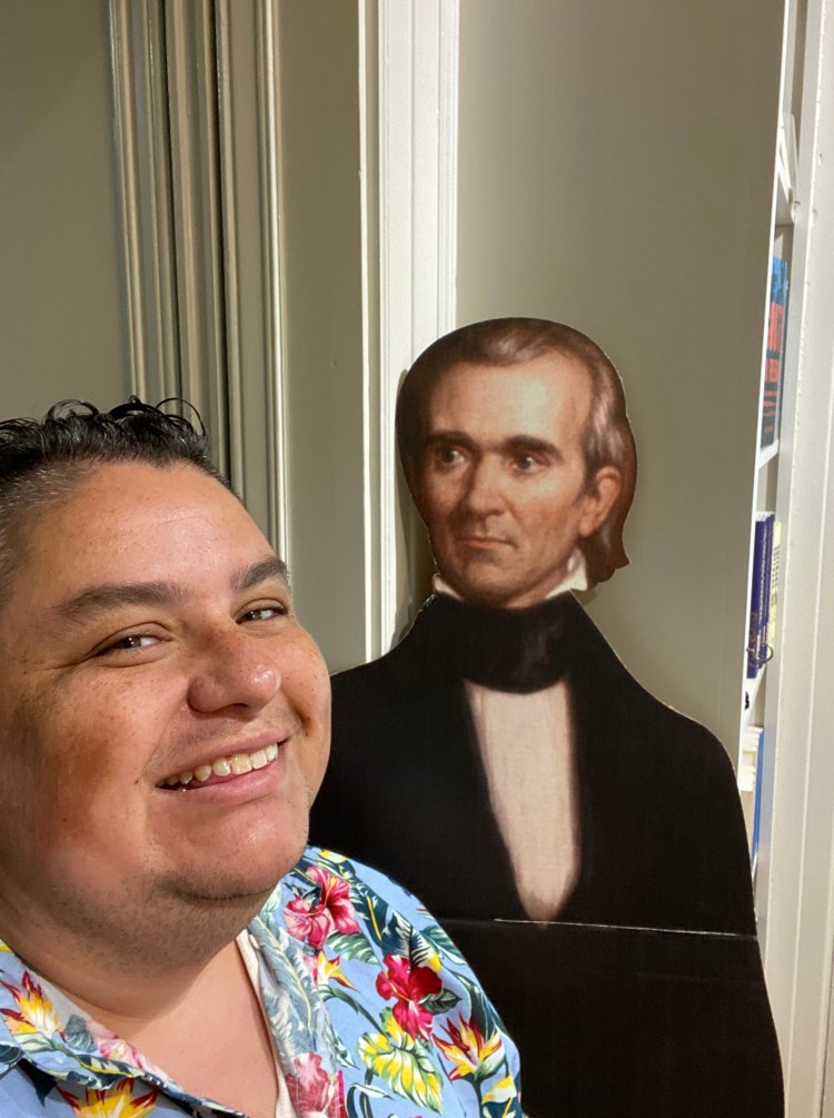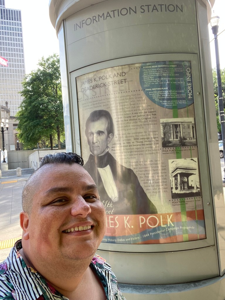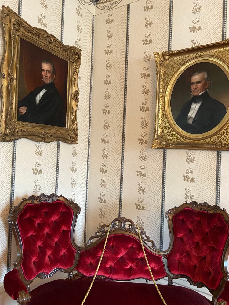 Re-Visiting the Polk home!James Polk’s homeWith the markerWith James in the museumMantelpieceIn the museumThe gorgeous red parlorLove this table, from the White HouseJames Polk x James PolkThe parlorThe dining roomJames Polk’s bookcaseJames Polk’s secretary James Polk’s bedroom