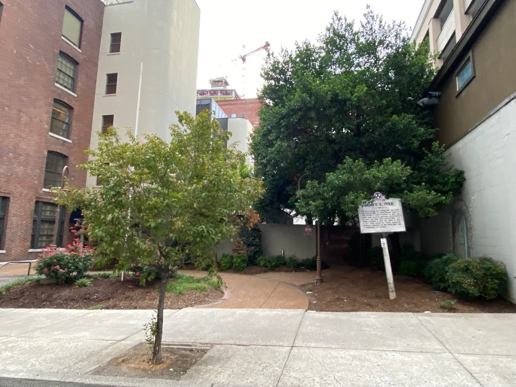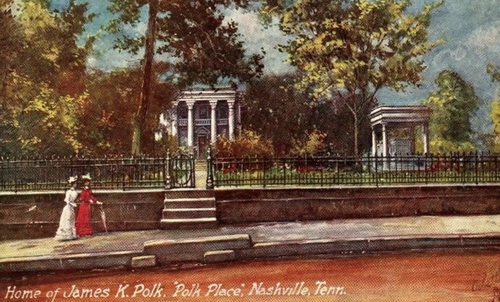 James Polk in downtown NashvilleMarker at the site of Polk Place!Polk Place location! The site of Polk PlacePresident Lyndon Johnson visiting the Polk Home. Polk Place in Nashville, including tomb of President and Mrs. Polk. The Polk home from HouseHIstree. The Polk Tomb on the grounds of Polk Place before being moved. Historical images of Polk Place from House Histree. Sarah and James Polk from Murfreesburo Post.
