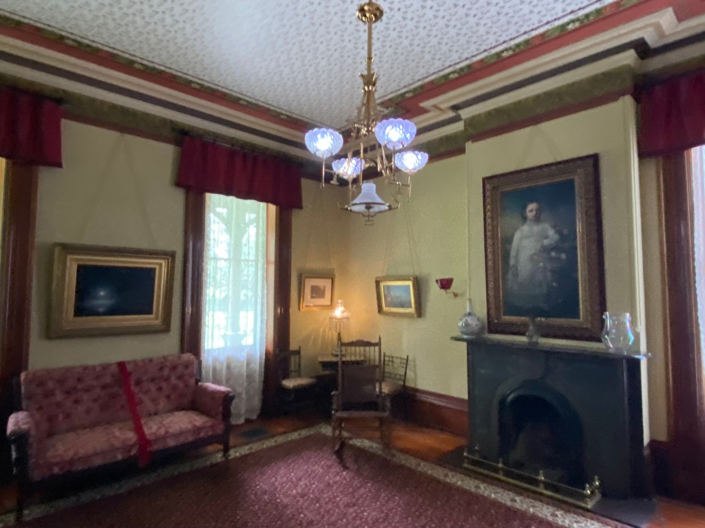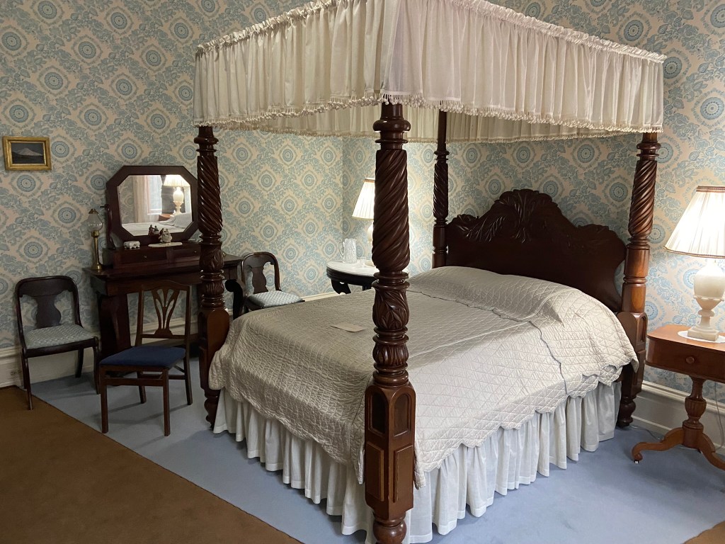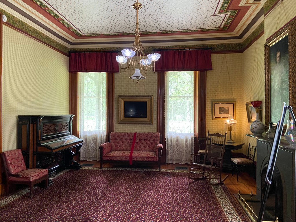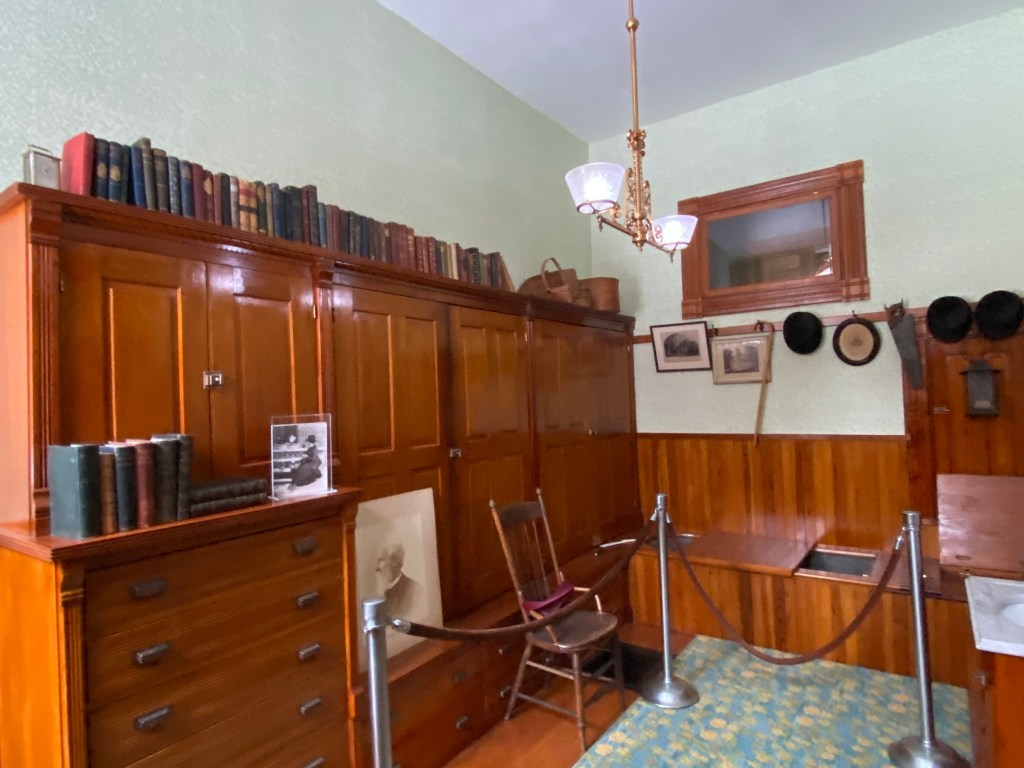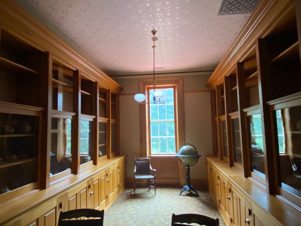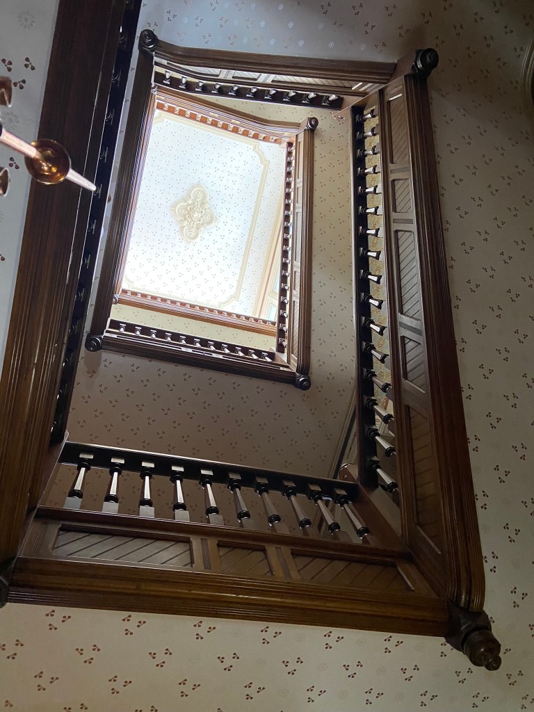 Spiegel GroveSpiegel Grove Entrance HallThe Red Room Parlor Parlor Rutherford and Lucy’s bedroom, where the President died Bedroom Amazing furniture with Hayes belongings Rutherford’s inner sanctumLarged Drawing Room Ceilings high enough to fit his official portrait Drawing RoomLucy and Fanny The stunning Library Staircase and Entrance Entrance Hall Rutherford’s very ornate chair, a gift. Dining Room Dining Room with China Rutherford’s Little SmithsonianFanny’s bedroom Sample bedroom Bright bedroom In the entrance The Breakfast Room In the third floor AtticAtticAttic The Lantern View from the topAt the top