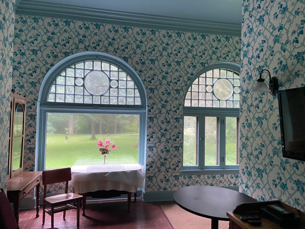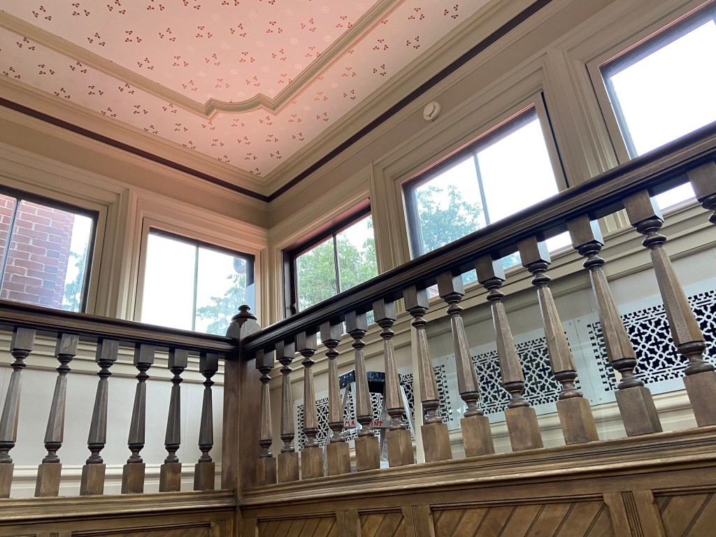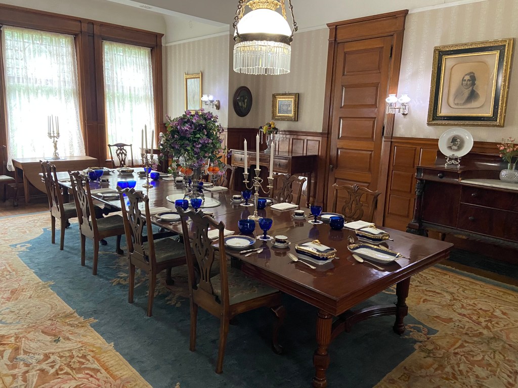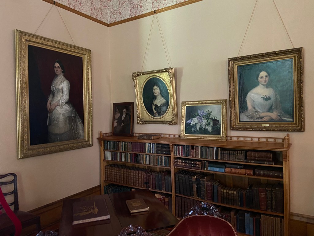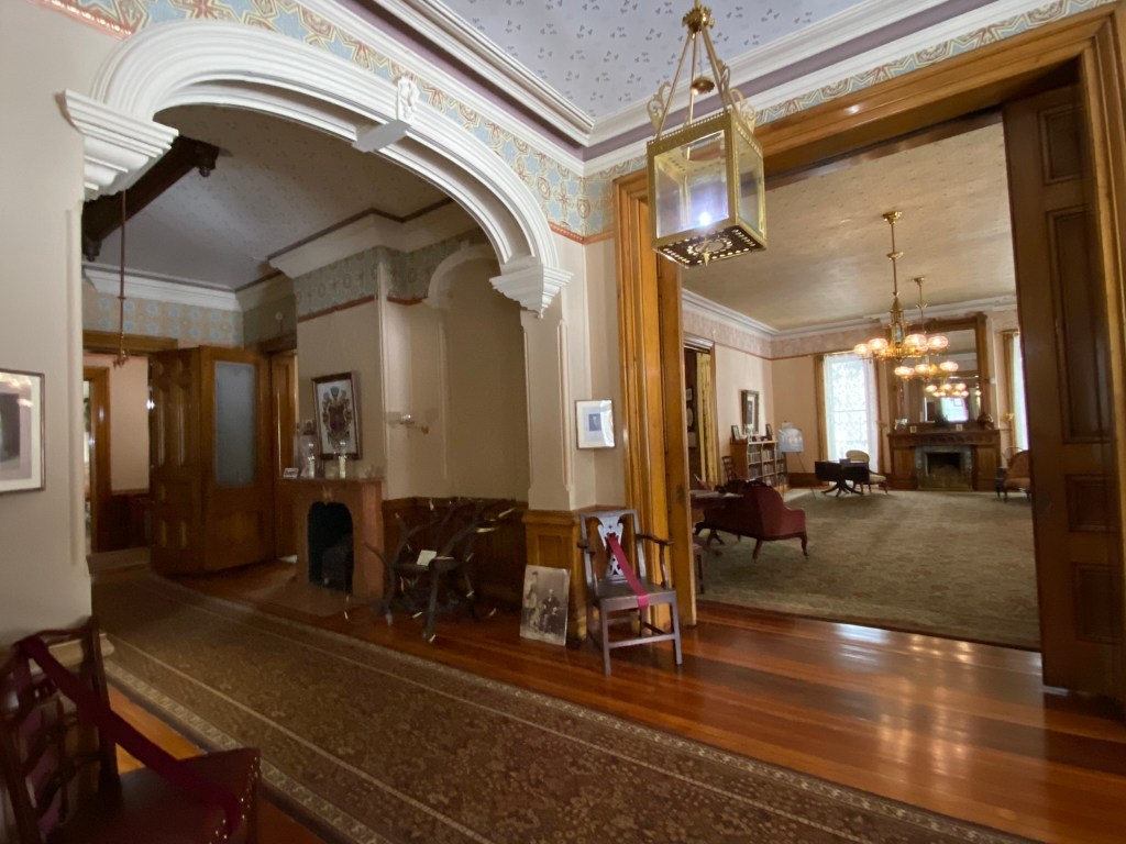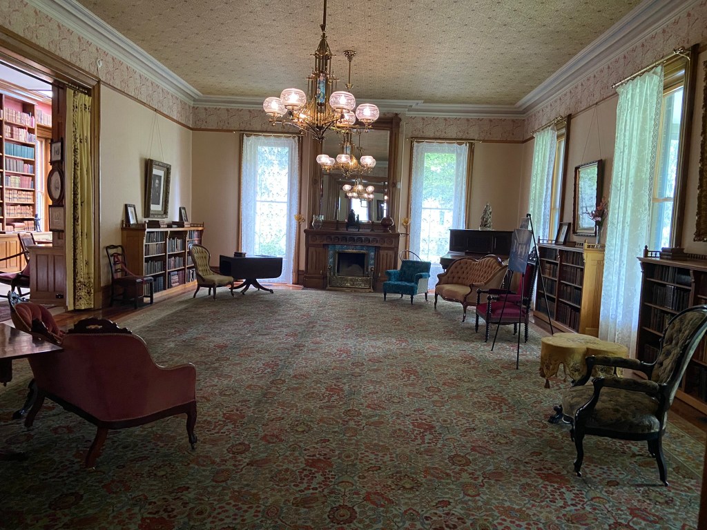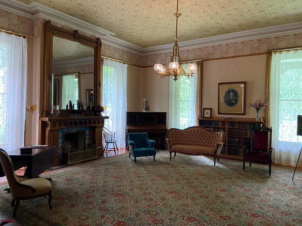 Spiegel GroveSpiegel Grove Entrance HallThe Red Room Parlor Parlor Rutherford and Lucy’s bedroom, where the President died Bedroom Amazing furniture with Hayes belongings Rutherford’s inner sanctumLarged Drawing Room Ceilings high enough to fit his official portrait Drawing RoomLucy and Fanny The stunning Library Staircase and Entrance Entrance Hall Rutherford’s very ornate chair, a gift. Dining Room Dining Room with China Rutherford’s Little SmithsonianFanny’s bedroom Sample bedroom Bright bedroom In the entrance The Breakfast Room In the third floor AtticAtticAttic The Lantern View from the topAt the top
