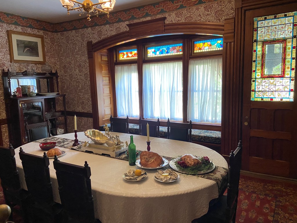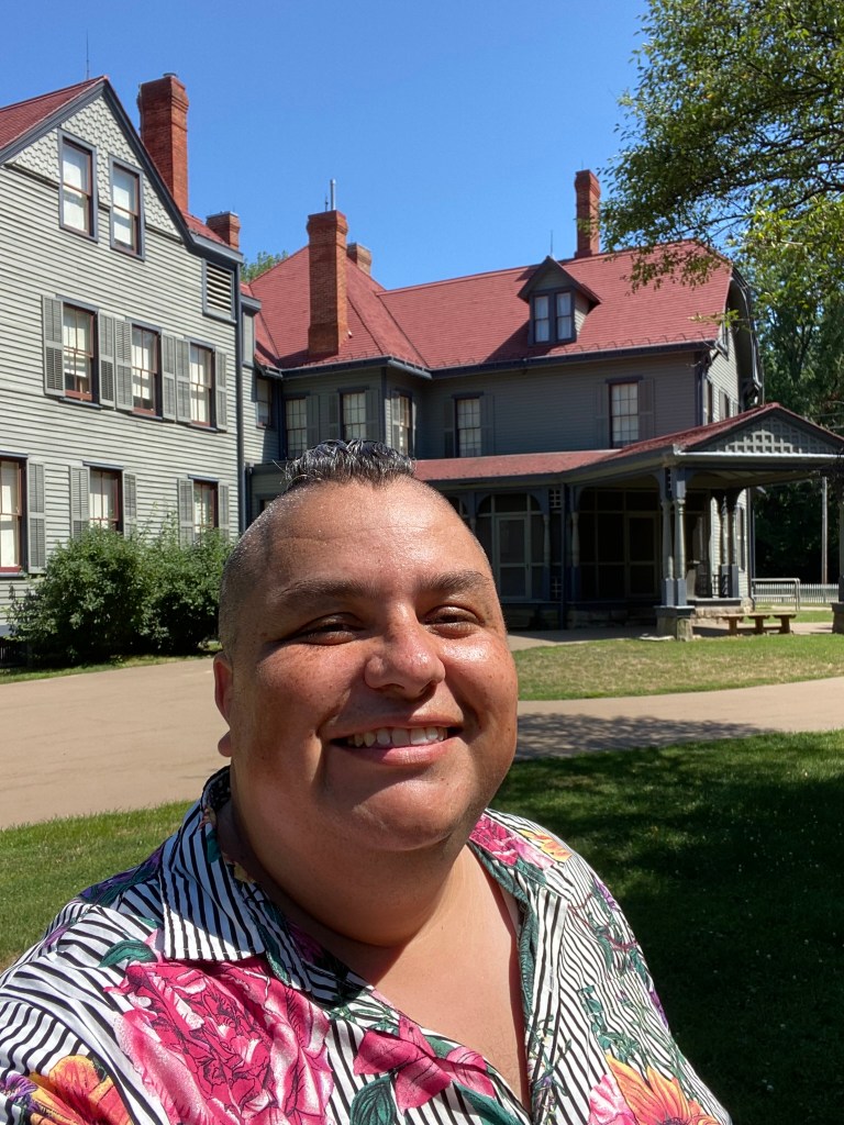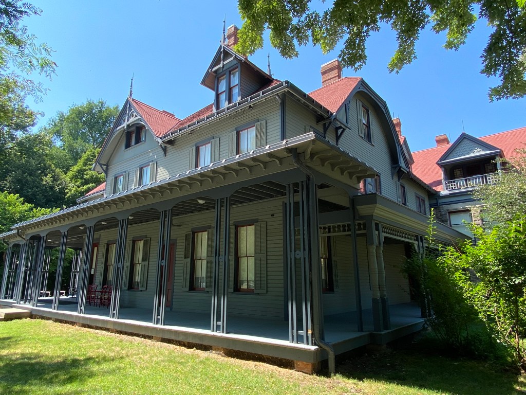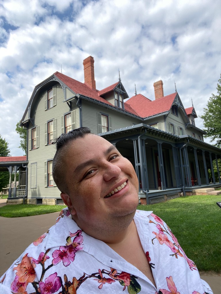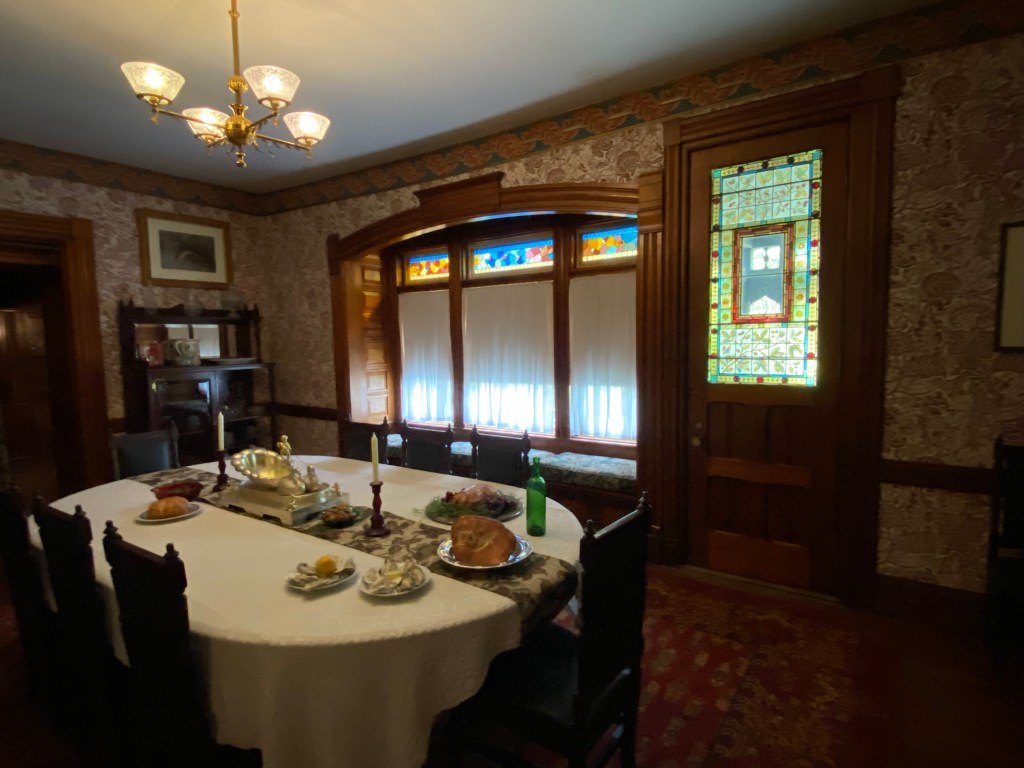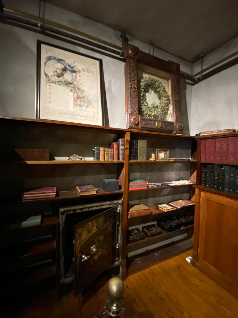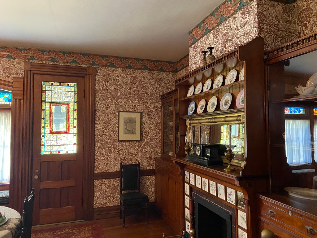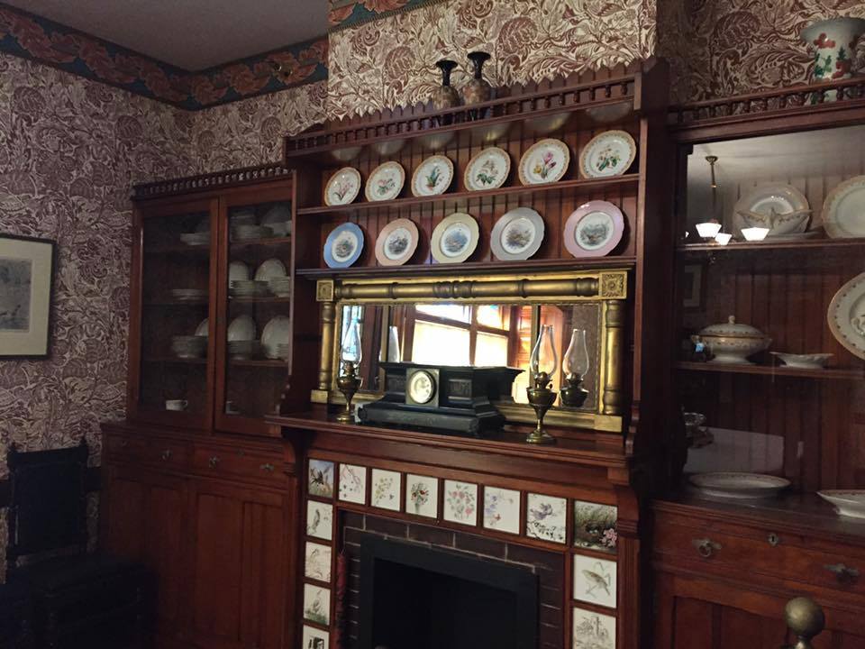 Gorgeous day at Lawnfield! LawnfieldMain entrance hallJames watching over the entranceEntrance hallFormal drawing room Dining room Plates and finery Heading up In the library Spider deskI love this room Library items In the vault Library selfie My favorite room Bedroom Mollie’s room James’ office From the front Lawnfield Love this angle, showing the joining of the differrent buildsProfile pic!