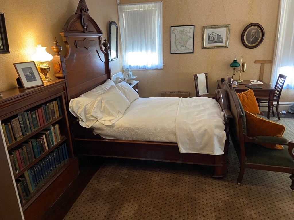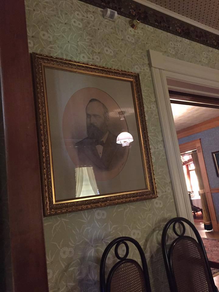 James Garfield’s Lawnfield Drawing Room James Garfield James all over his mother’s room Dining Room Garfield China James at the top of the stairs Memorial Library Just love the collection Garfield’s deskAnother angle in the Library In the vault Garfield’s bedroom Between two roses With Matt Hochstetler in front of Lawnfield