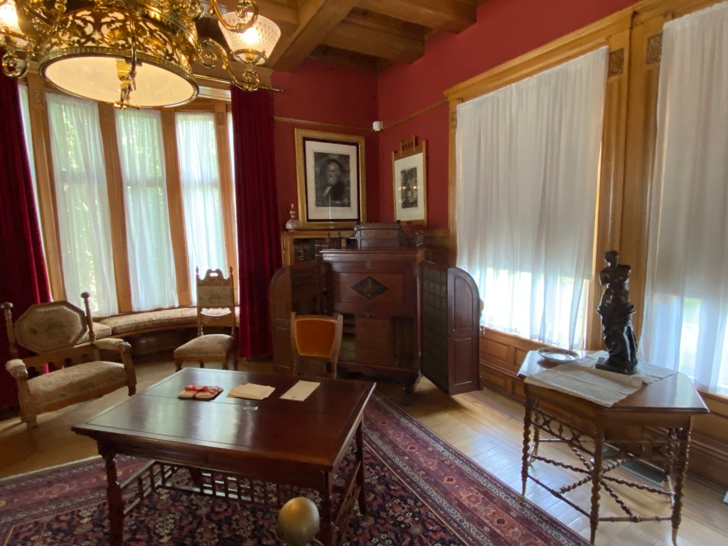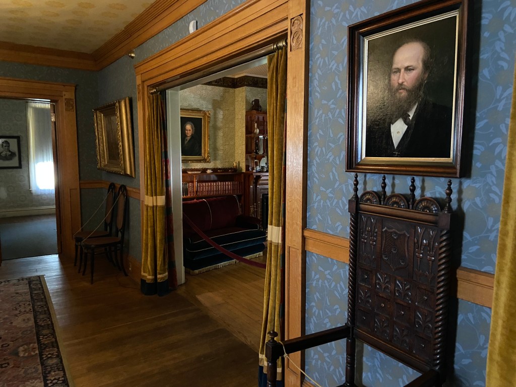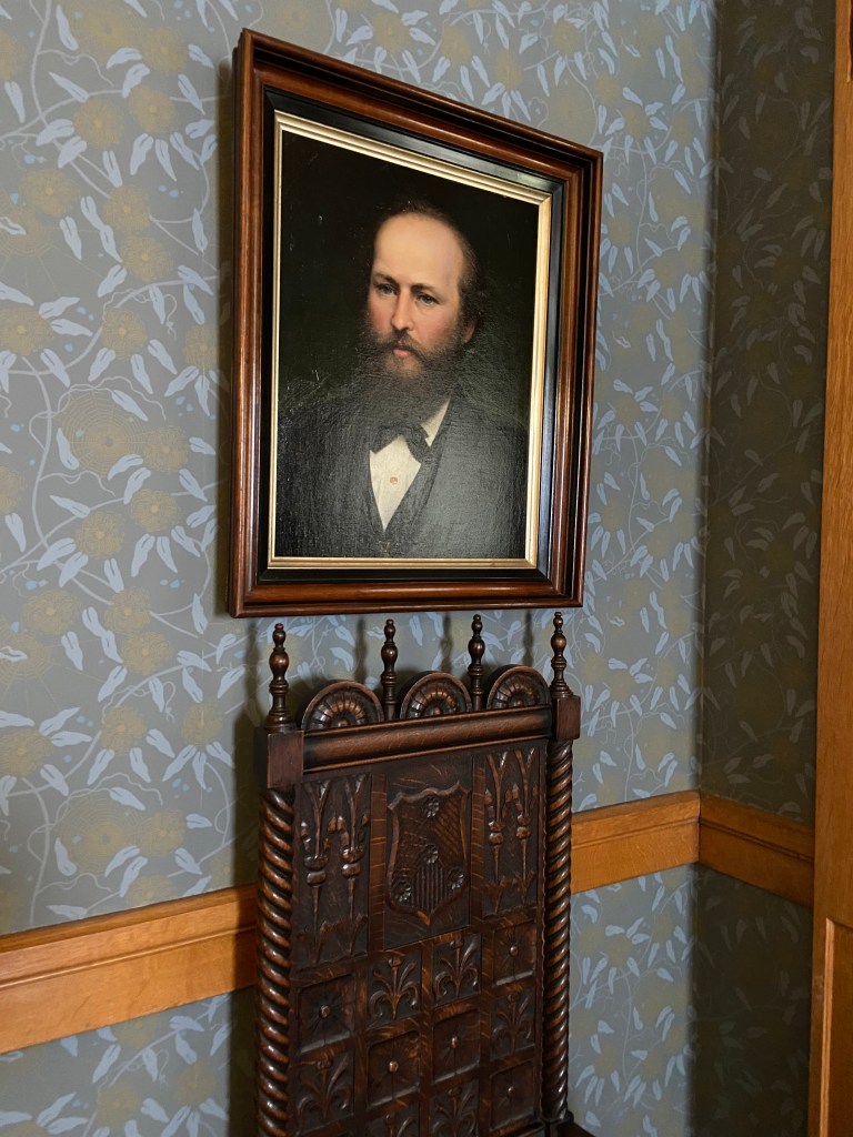 James Garfield’s Lawnfield Lawnfield Drawing RoomGarfield’s Mother’s room Front stair Reception HallJames looking out Stair and additionDining Room Love the Library Cool bookcases Garfield’s desk from Congress and personal items Library Garfield bust In the vault, including Queen Victoria’s flowers Garfield’s Bedroom Bedroom Bedroom Garfield’s Home You can see the additions here