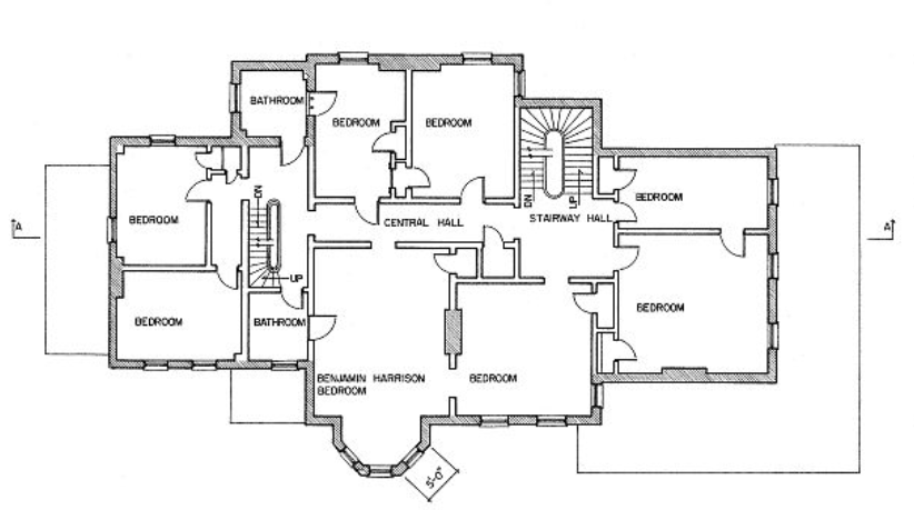 Postcards of the Harrison Home Floor Plan of the Harrison home, from the Library of Congress. Caroline Harrison, Benjamin Harrison, and Mary Harrison.