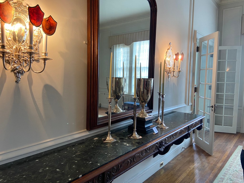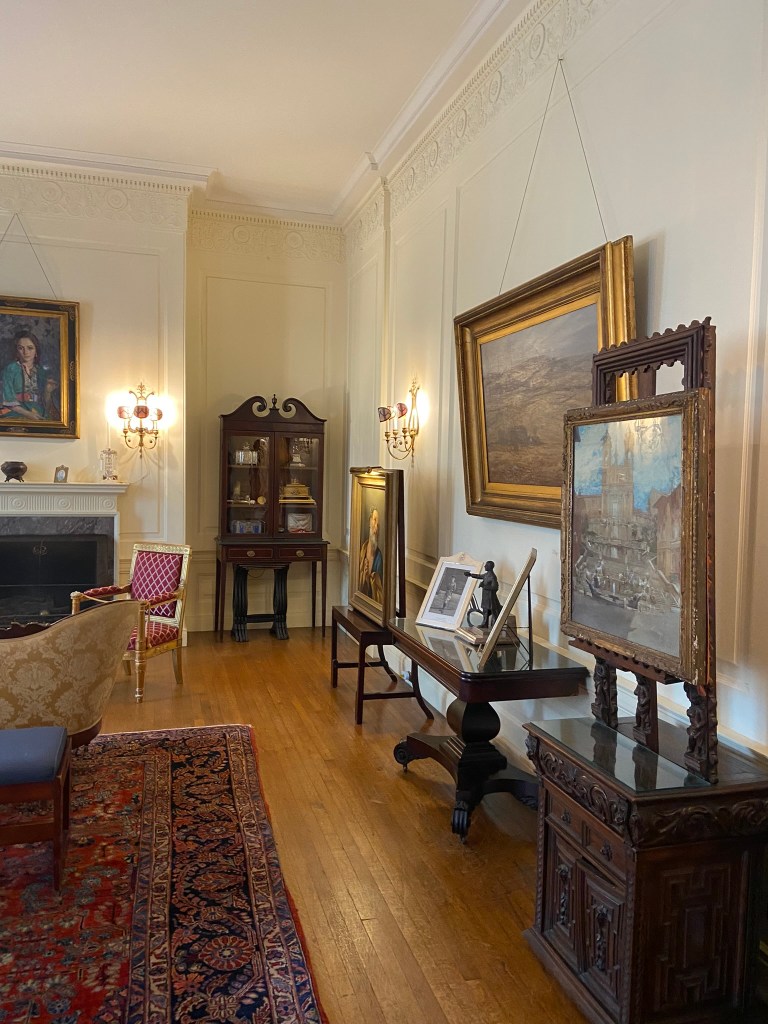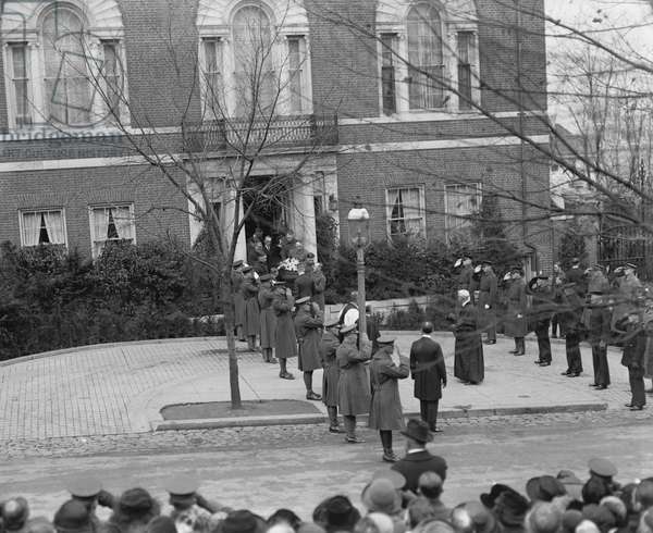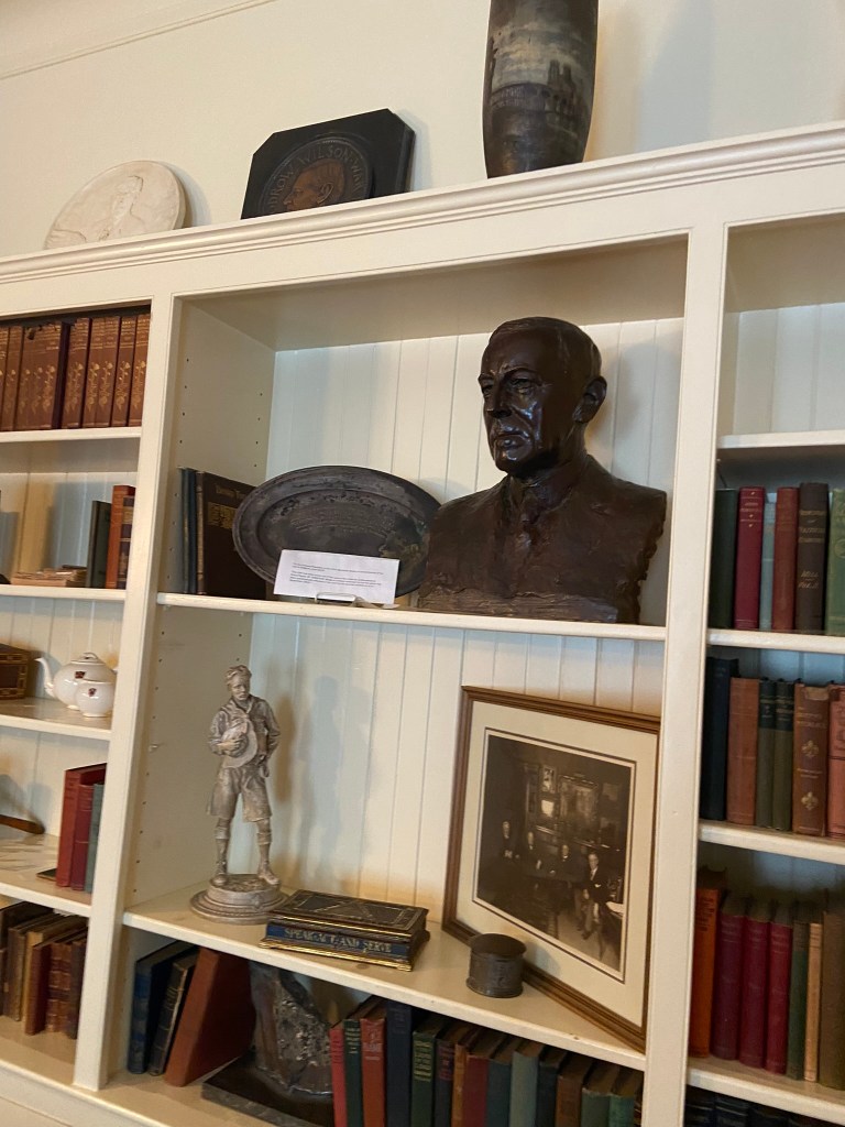 Woodrow Wilson HouseWoodrow Wilson HouseOther angle Entrance into the lower levelIn the full basement Wine cellar Heading up to the amazing upper levelMy favorite part of the house Drawing Room, amazingly appointed Tapestry presented by nation of France. Furnishings of the Drawing Room Dining RoomSpare but beautiful Edith’s portrait in the Dining RoomTerraced garden off second floor Gardens, looking towards the home and balcony Wilson neighborhood from the gardenLoved this setting Looking out on the gardensLibrary with Wilson’s portrait Wilson’s Library needed enlargened for his books Woodrow Wilson’s books Ellen Wilson and their three daughters in White House Stairs leading to upper level. Woodrow’s bedroom Woodrow’s bedroom Edith’s bedroom Edith’s bedroom Upper level closets View from up top In the attic store roomWilson items Wilson bust Wilson pantry IceboxFront office, with gramophone given by Douglas Fairbanks. My best Woodrow impression Woodrow Wilson House The Drawing Room from the National Trust for Historical Preservation. Photograph of Woodrow Wilson House from Todd A Smith. Floor plans for the Woodrow Wilson House from the Library of Congress. The Woodrow Wilson House: Moving in, one of the last photos, and his funeral leaving.