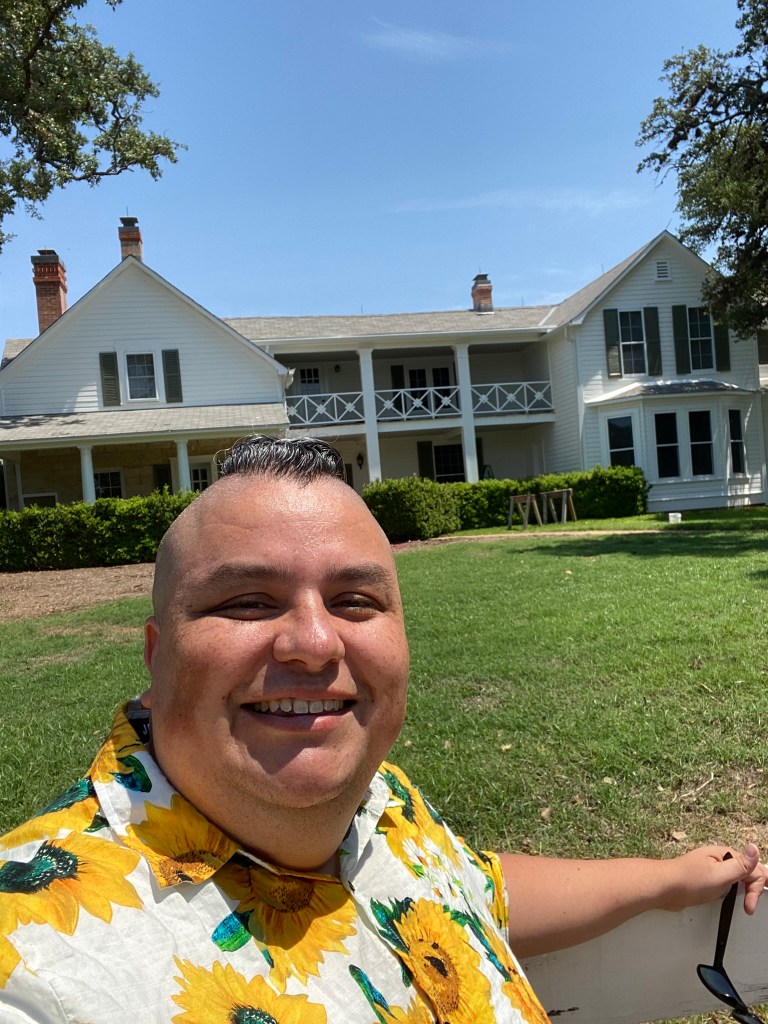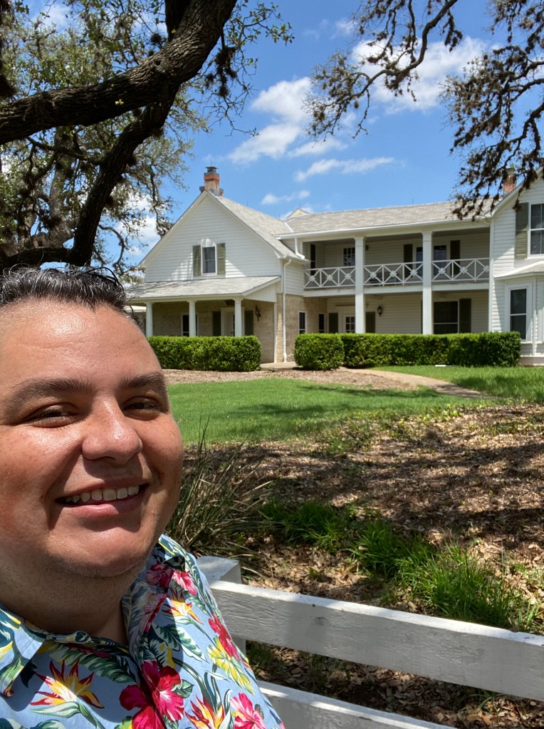 At the LBJ Ranch entranceOn the hangarSidling up to the houseThe LBJ Ranch!View of the frontWith the pool includedFrom behind