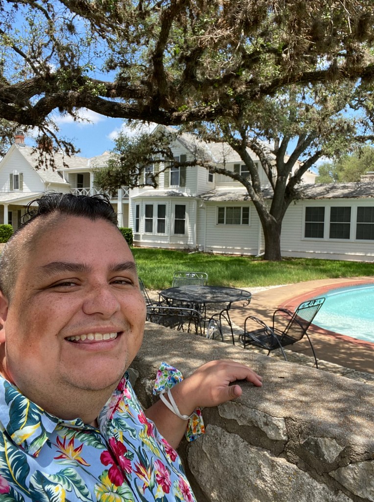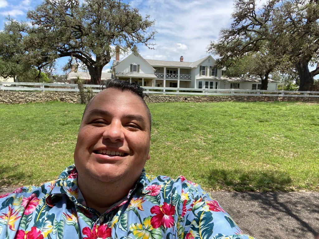 At the LBJ RanchThe LBJ Ranch! Heading in!At the poolThe sidewalk of visitorsOut backAirplane on the hangarWith LBJ’s planeThe nearby birthplaceThe LBJ Birthplace