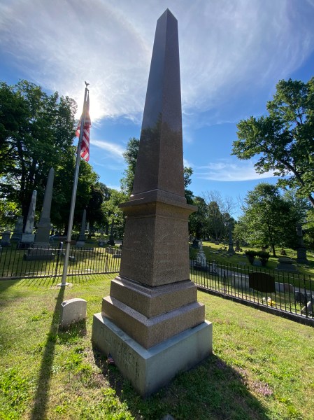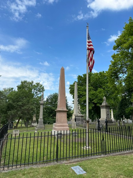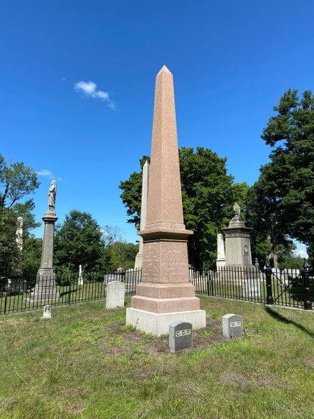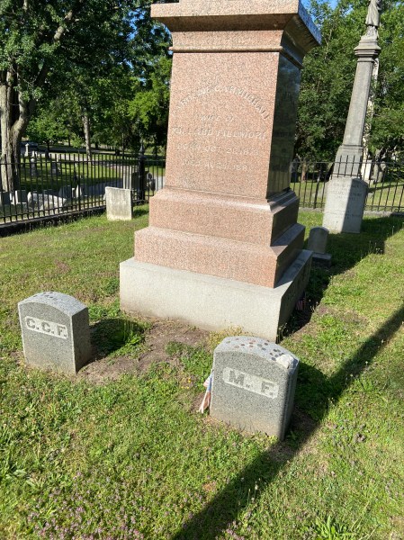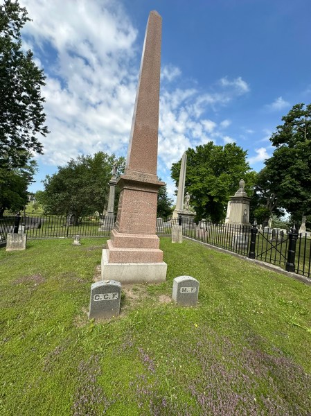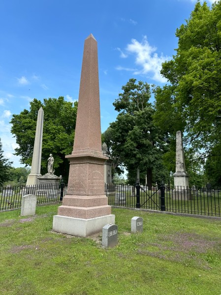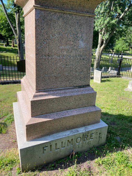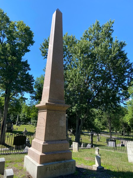 Millard Fillmore’s gravesite in Forest Lawn. The Fillmore plot, with Millard, his two wives, two children, and mother-in-lawMillard and Caroline’s foot markers beside the obelisk.The obelisk.Millard Fillmore gravesite. From a distance