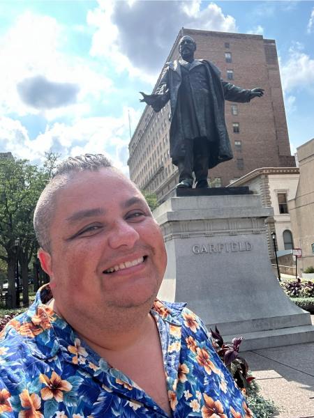 The Garfield MemorialBeautiful exteriorThe James Garfield statue Under the rotundaClose up of the statueStunning viewGarfield and me Looking downLove the detailAcross the top Looking towards Cleveland and Lake ErieIn the cryptLooking at the casketsWith my parents