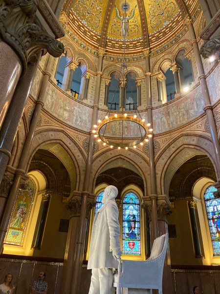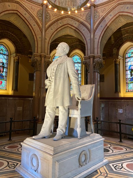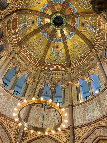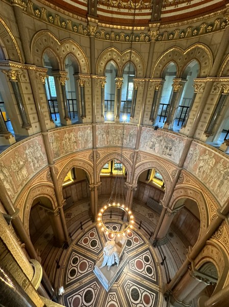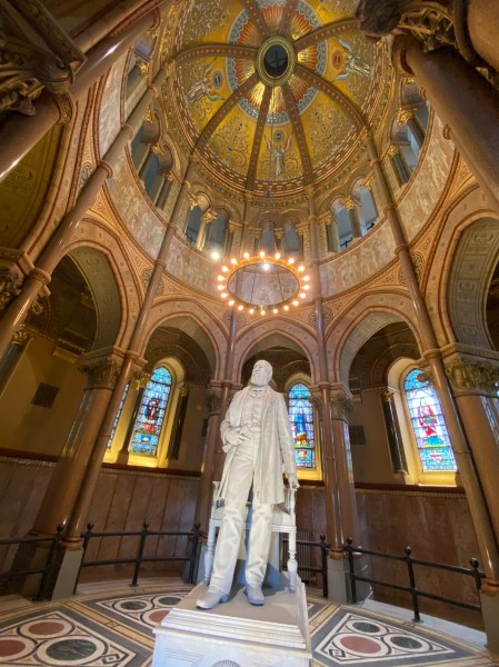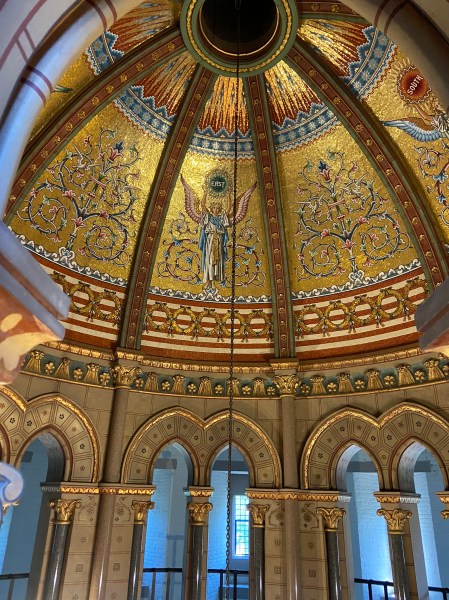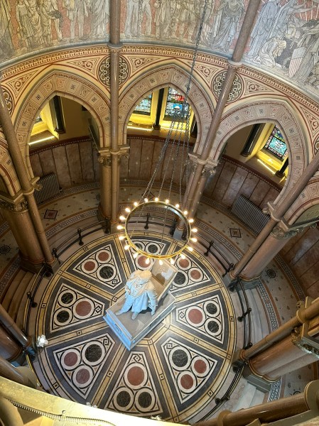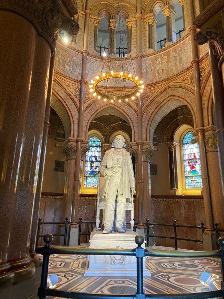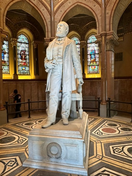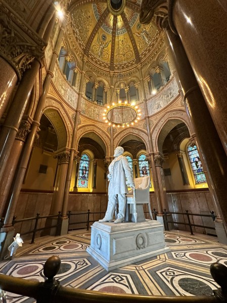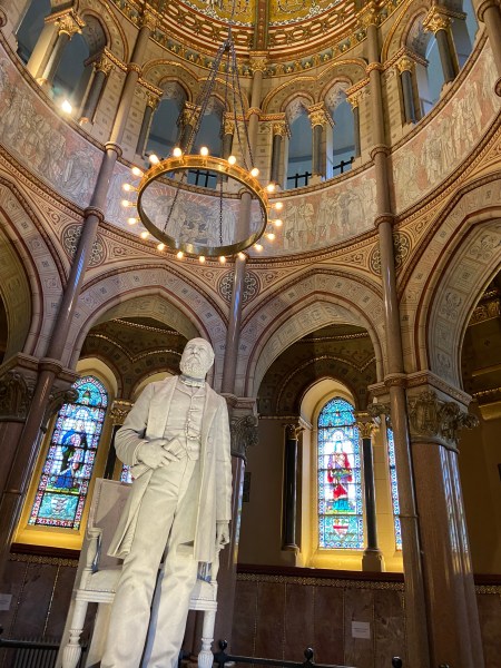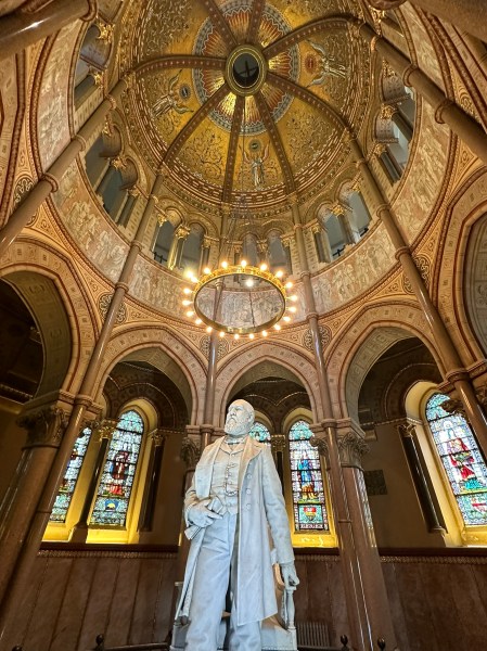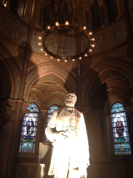 The Garfield MemorialHeading upThe entranceHeading into the Memorial HallWith James Garfield’s statueUnder the rotundaNichesFrom aboveLooking down on the statueClose up of the domeThe caskets in the cryptAt the tomb