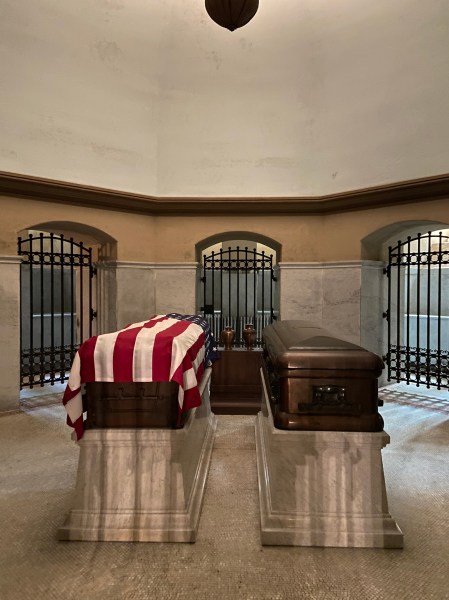 The exteriorJames Garfield statueInterior of Memorial HallThe view from the terraceThe caskets in the crypt