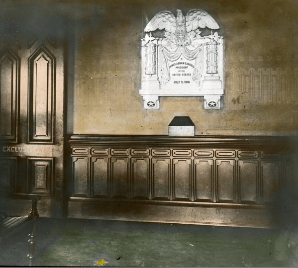 Garfield Shooting Site at the Baltimore and Ohio Railroad Station; Gold Star is where Garfield fell.