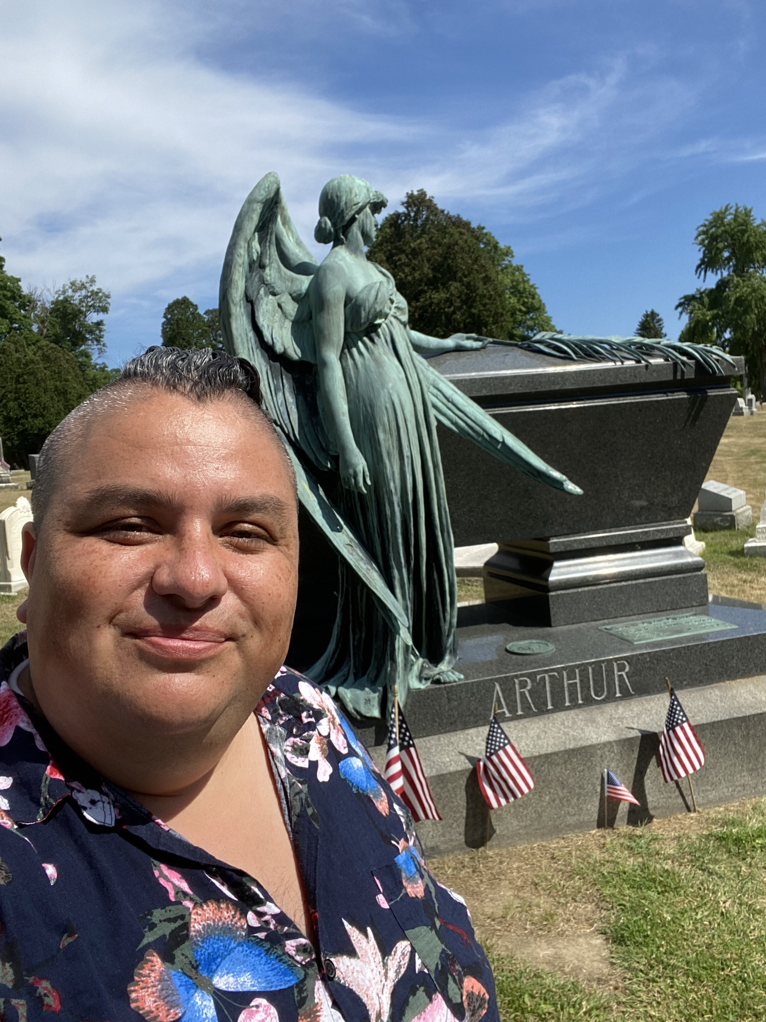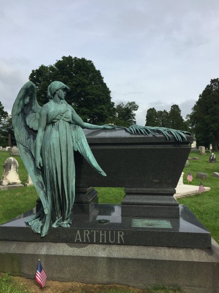 Chester Arthur’s gravesiteThe Angel of Sorrow At the base Ellen Arthur’s markerChet Jr’s marker Chester’s parents Chester Arthur’s dramatic gravesiteThe cemetery