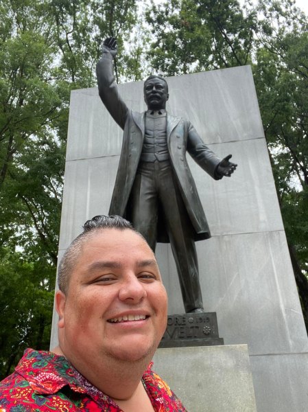 Roosevelt Island in Washington DC In Buffalo!In Rapid CityRapid City! Outside the Rough Rider bar in PhoenixRough Rider bar!At Mount Rushmore in South DakotaTeddy, between Washington, Jefferson, and LIncoln