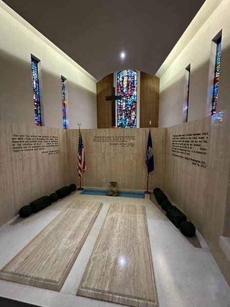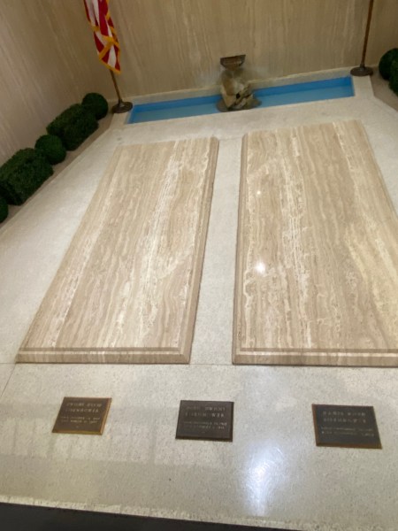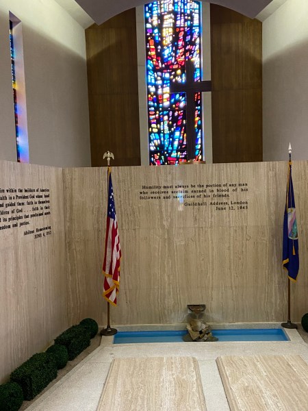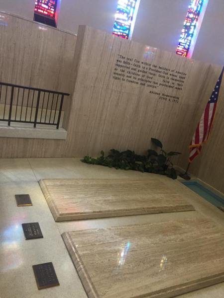 Through the grilleThe graves of Ike and MamieWith quotes on the wall