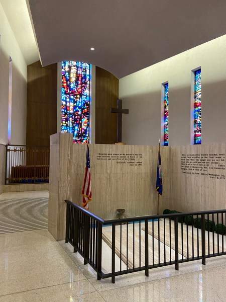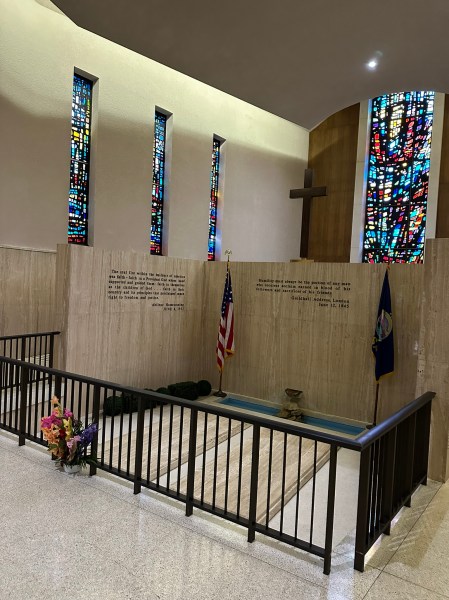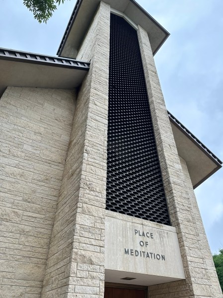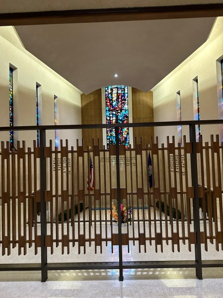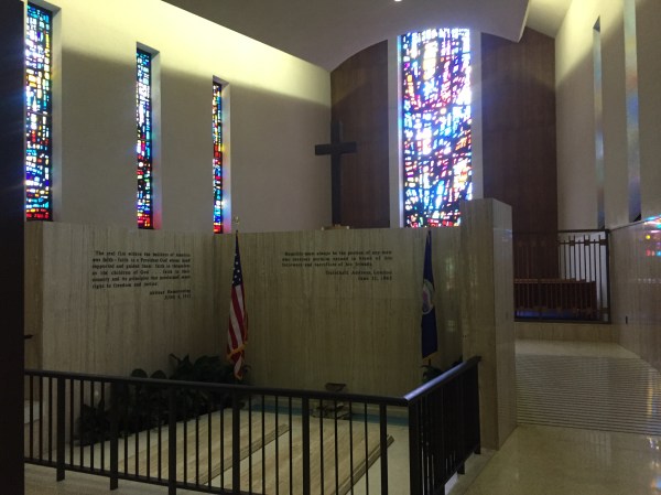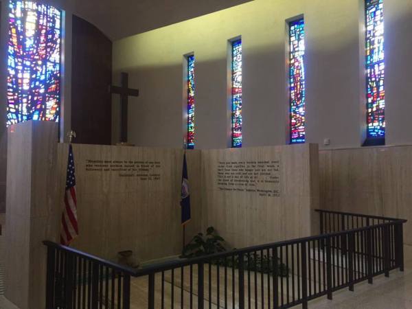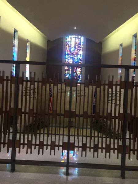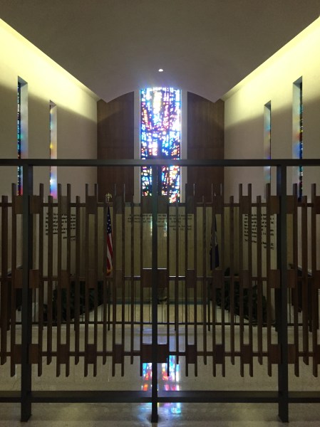 The Place of Meditation at the Eisenhower Museum and Library. The grille at the entrance The marble markers and plaquesDwight Eisenhower and Mamie In the chapel