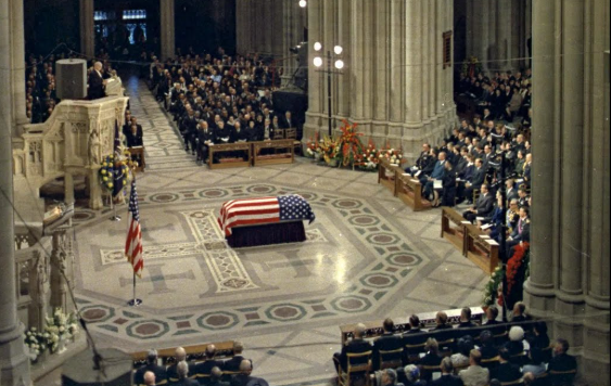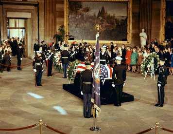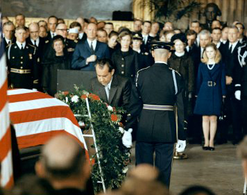Lying in state in the Capitol RotundaPresident Nixon laying a wreath