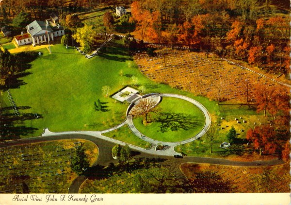 Postcard of the Kennedy burial sitePostcard of burial site from above